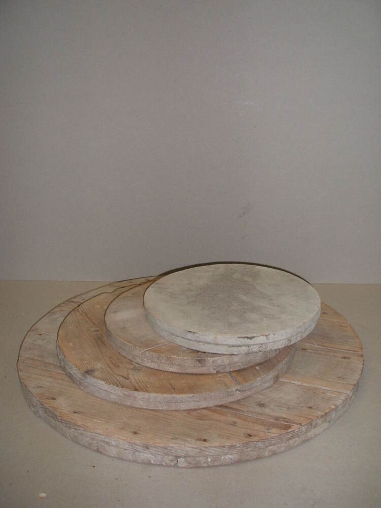 Ronde borden / platen van hout. Gebruikt voor drogen en transporteren van stukken. De borden en platen zijn er in verschillende formaten (diameters).