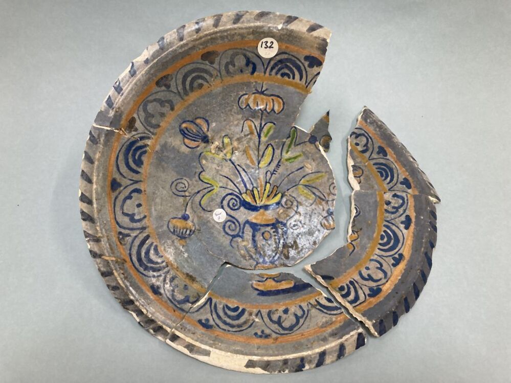 Vijf schotelfragmenten met bloemendecor
