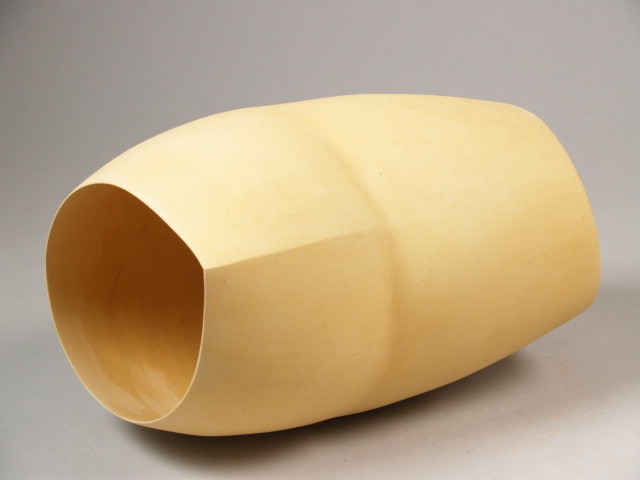Object, horizontaal liggende asymmetrische vorm met open zijden, kleur zacht geel