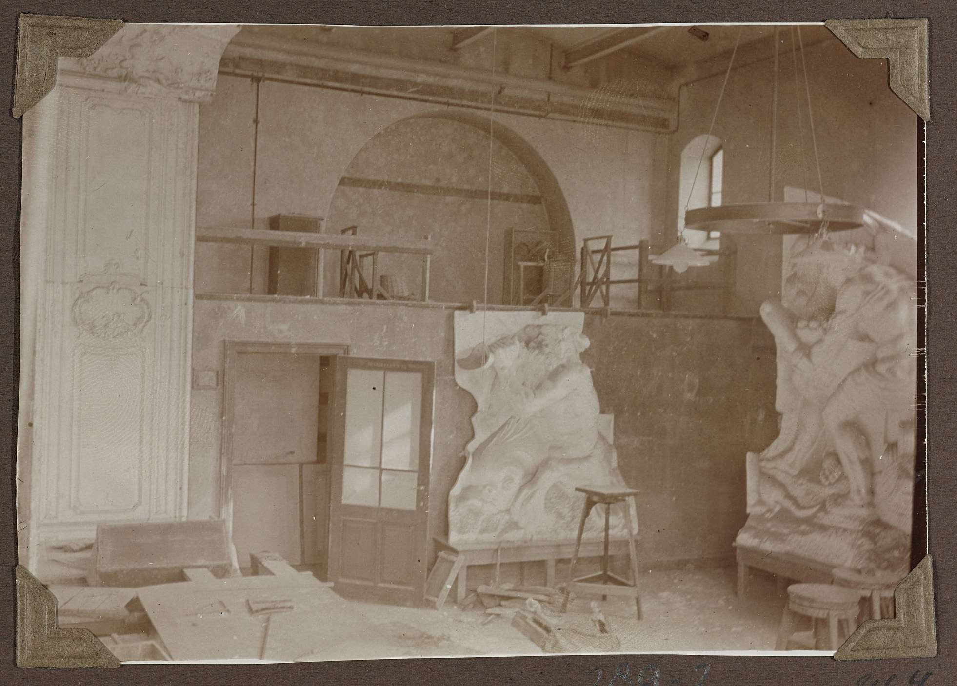 Gipsafgietsels in de werkruimte van toren 1? Gezien de lamp zou dit de Rijksnormaalschool kunnen zijn.