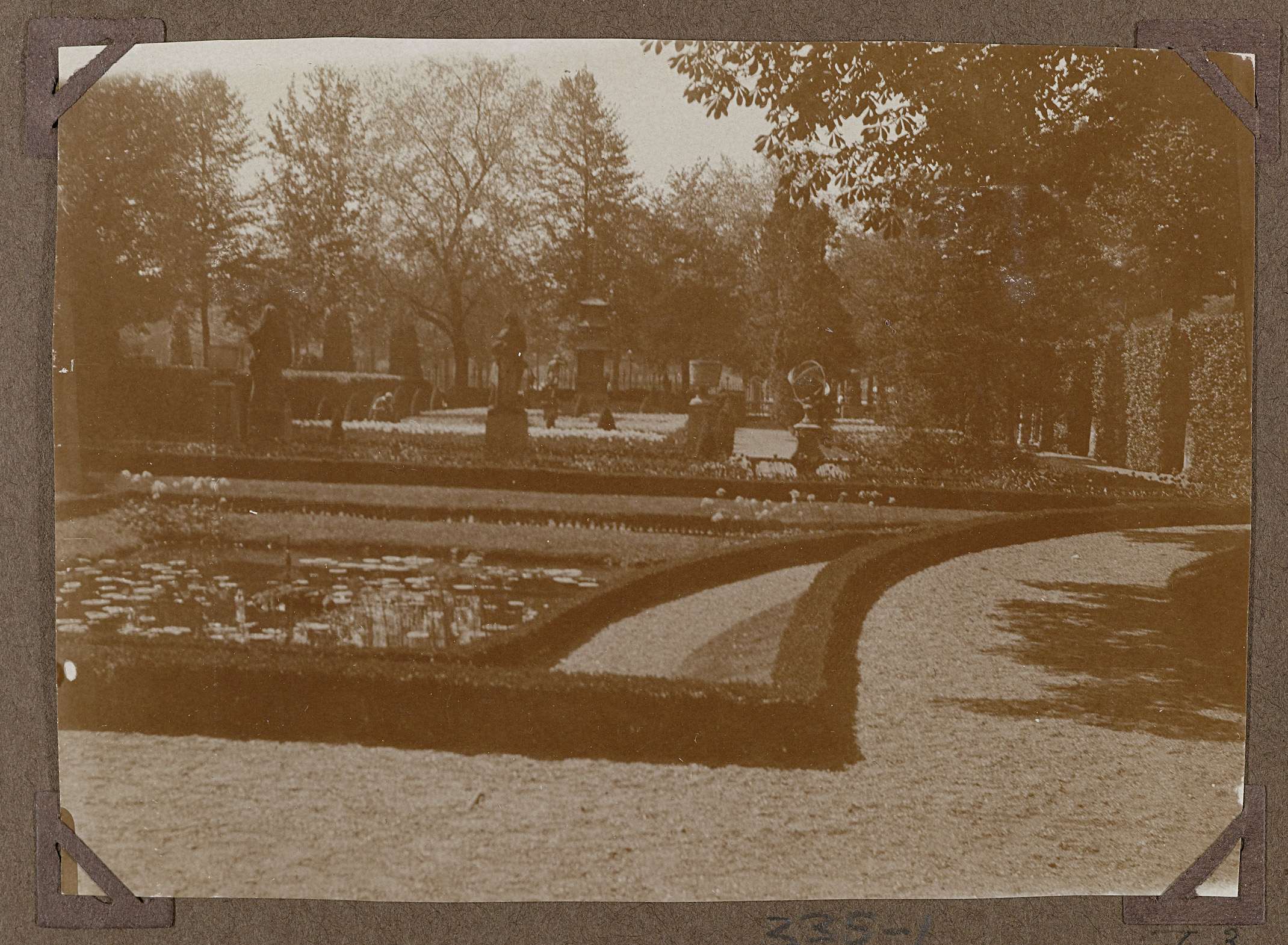 Franse tuin met vijver aan de zuidzijde van het museum in 1928