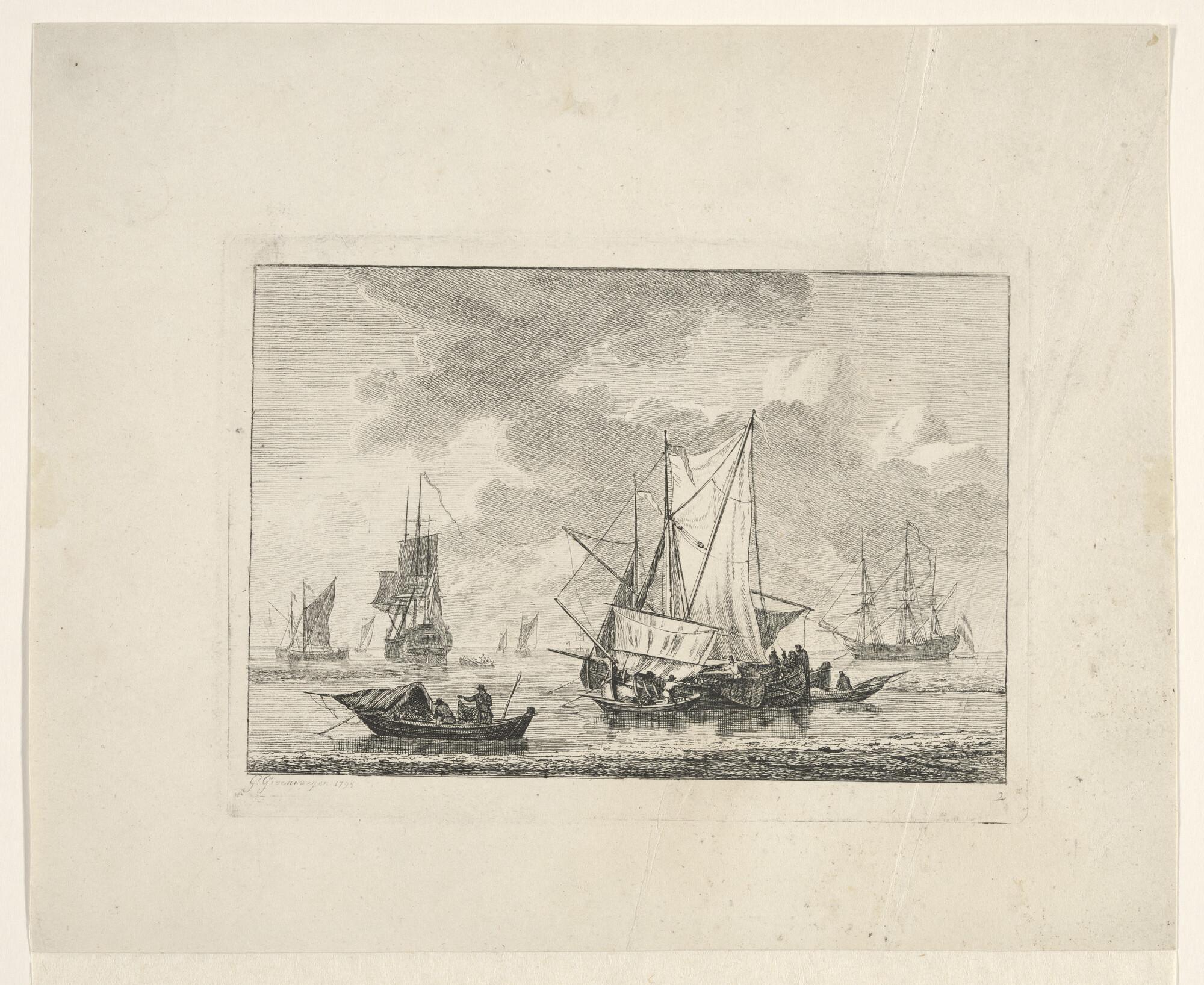 Uit de serie van zeegezichten met diverse soorten vaartuigen: nummer 2