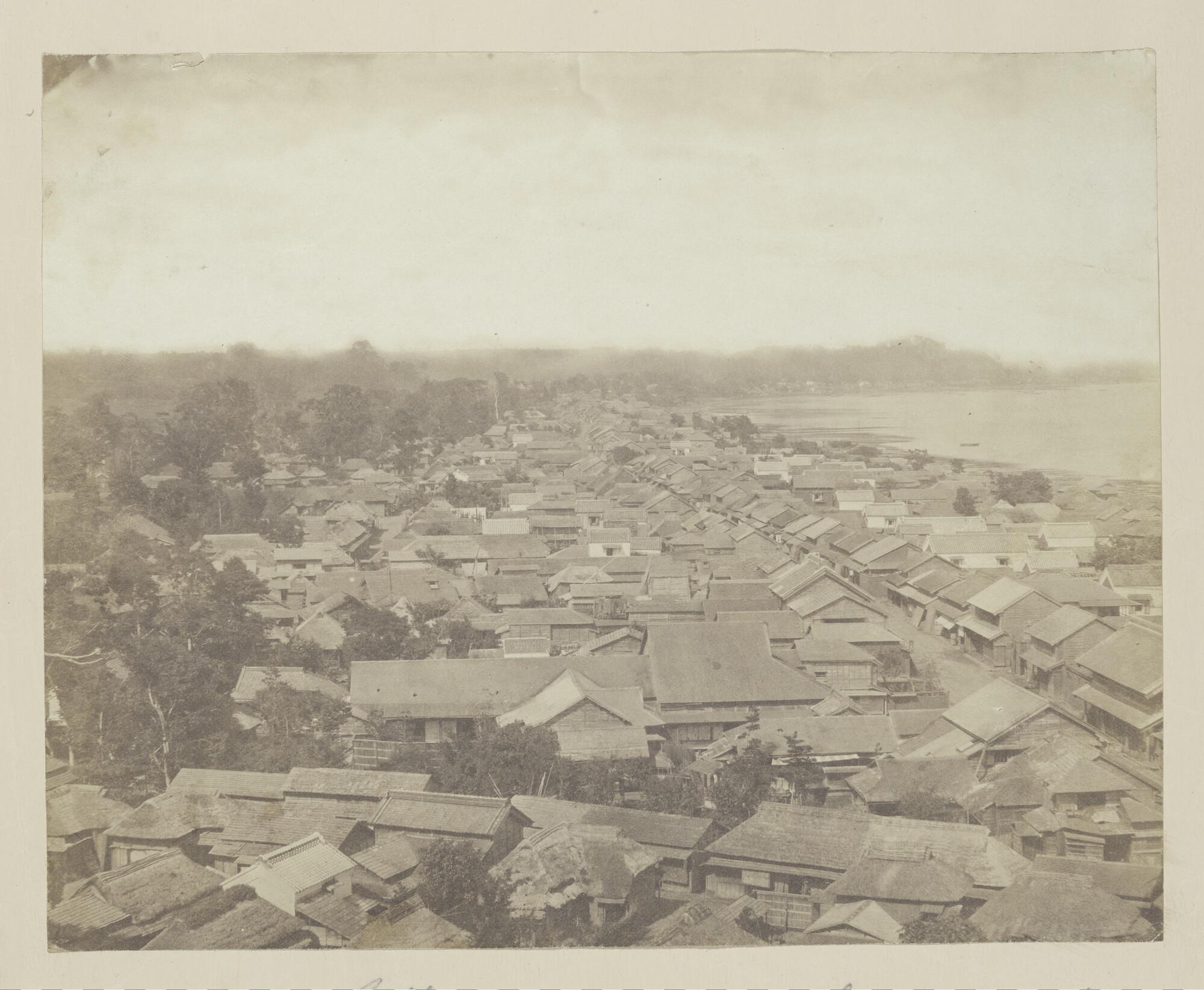 Foto van Kanagawa en de hoofdweg (Tokaido) naar Edo (Tokyo).