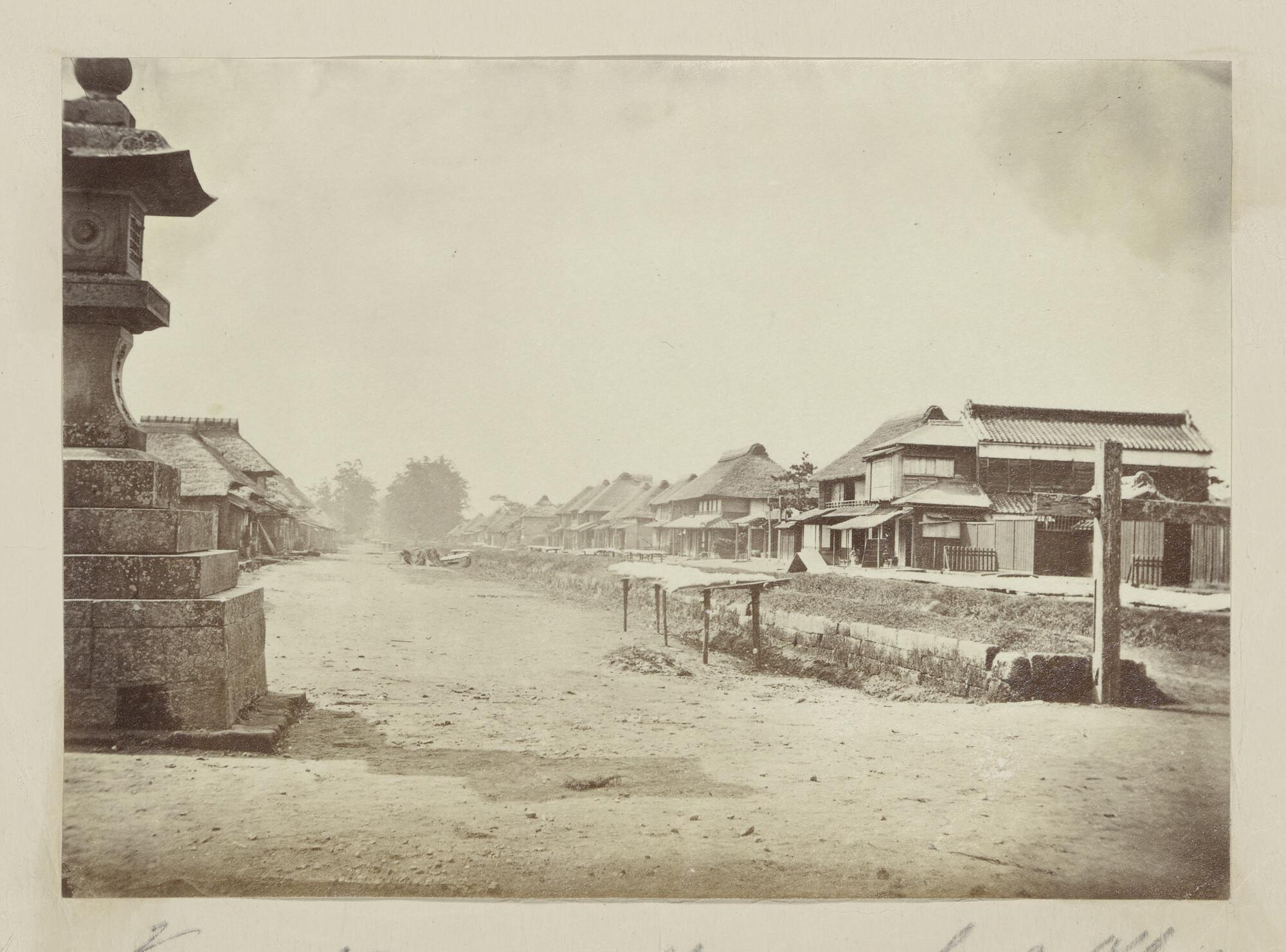 Foto van een straat in Kamakura waar twee Britse officieren, major G.W. Baldwin en lieutenant R.N. Bird werden vermoord