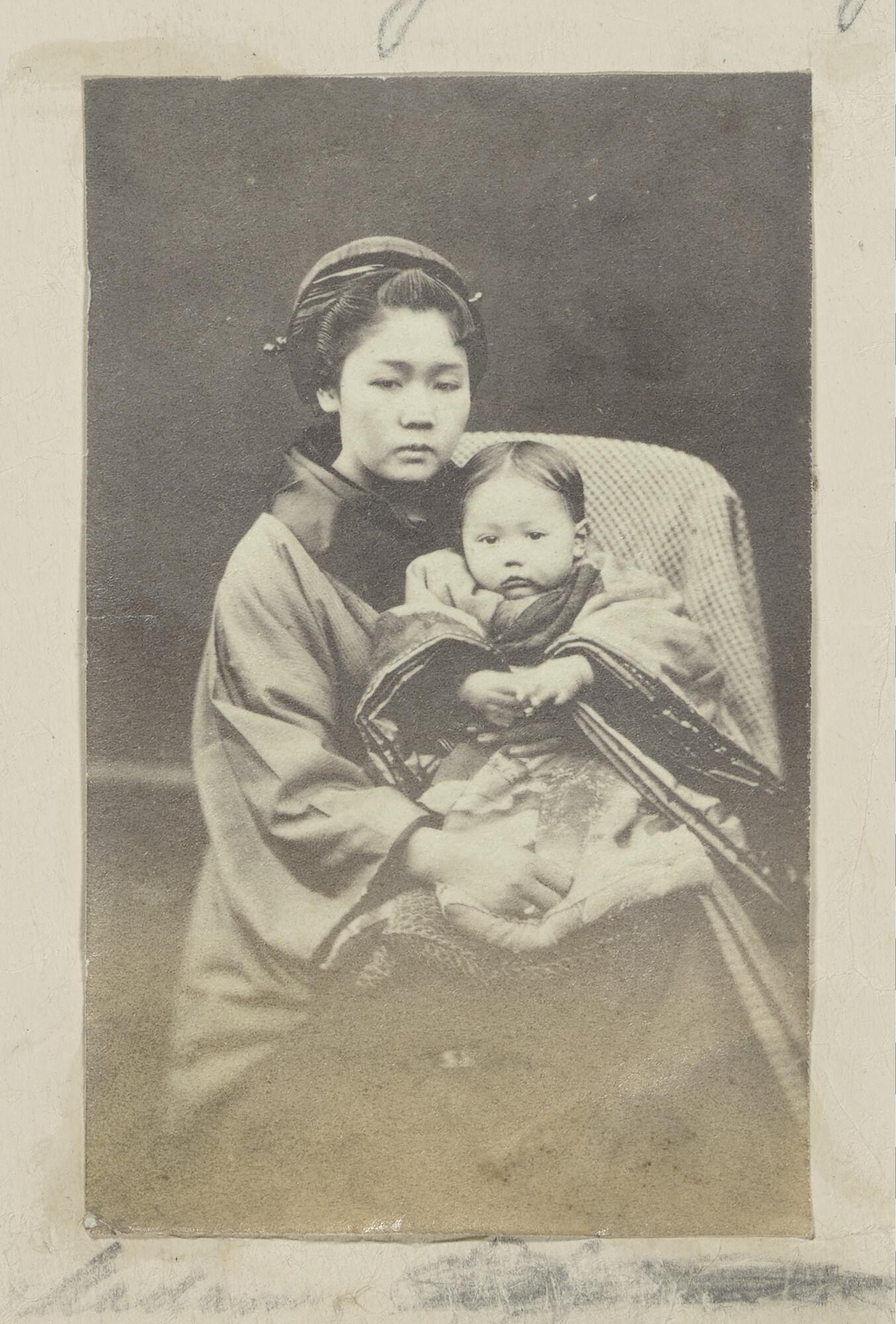 O-Tsuru, the Japanese companion of the Dutch interpreter Henry Heusken, with their son.