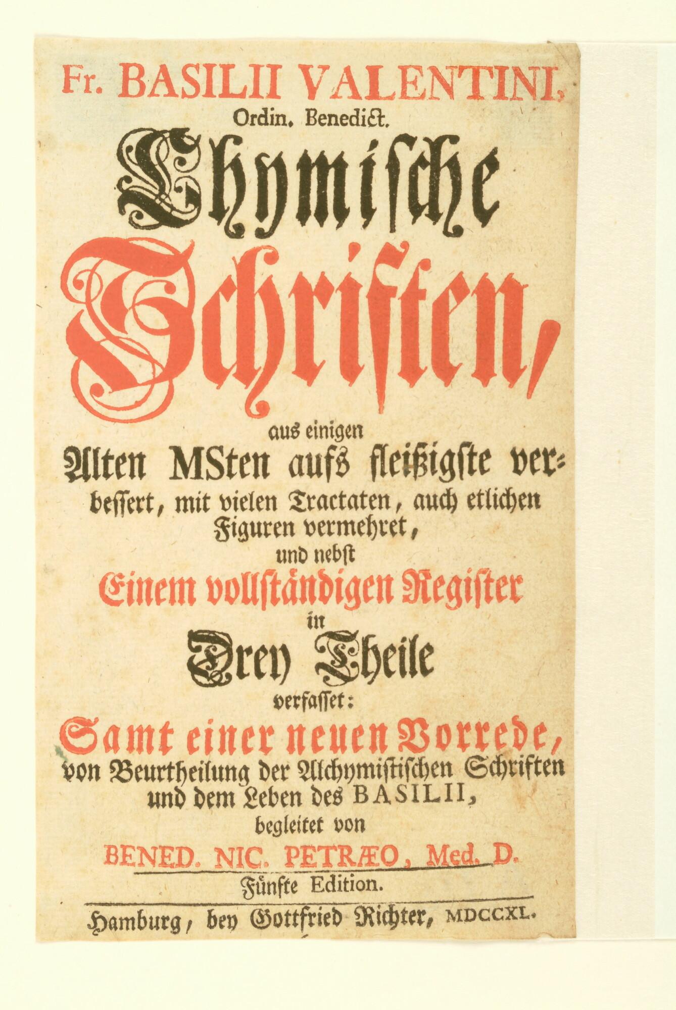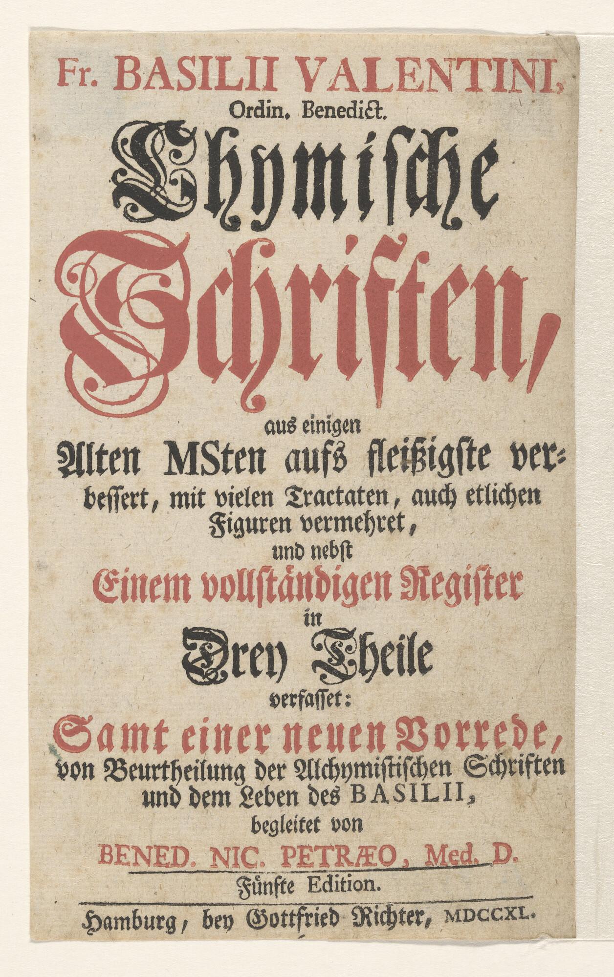 Titelblad van Lhymische Schriften door Fr. Basili Valentini
