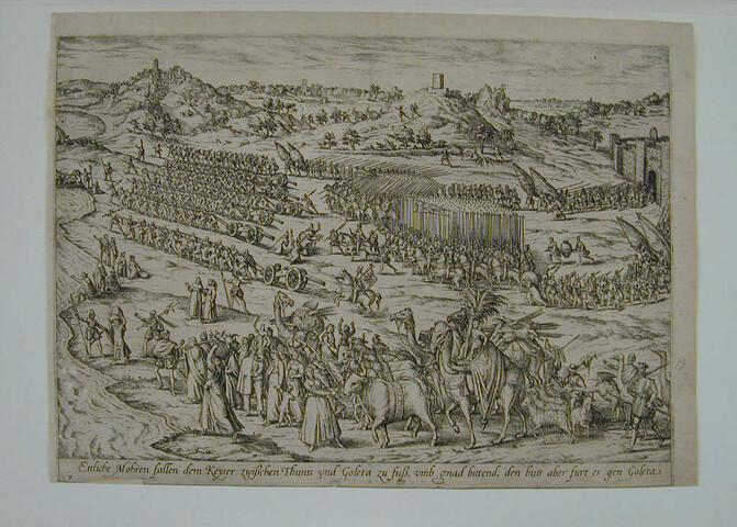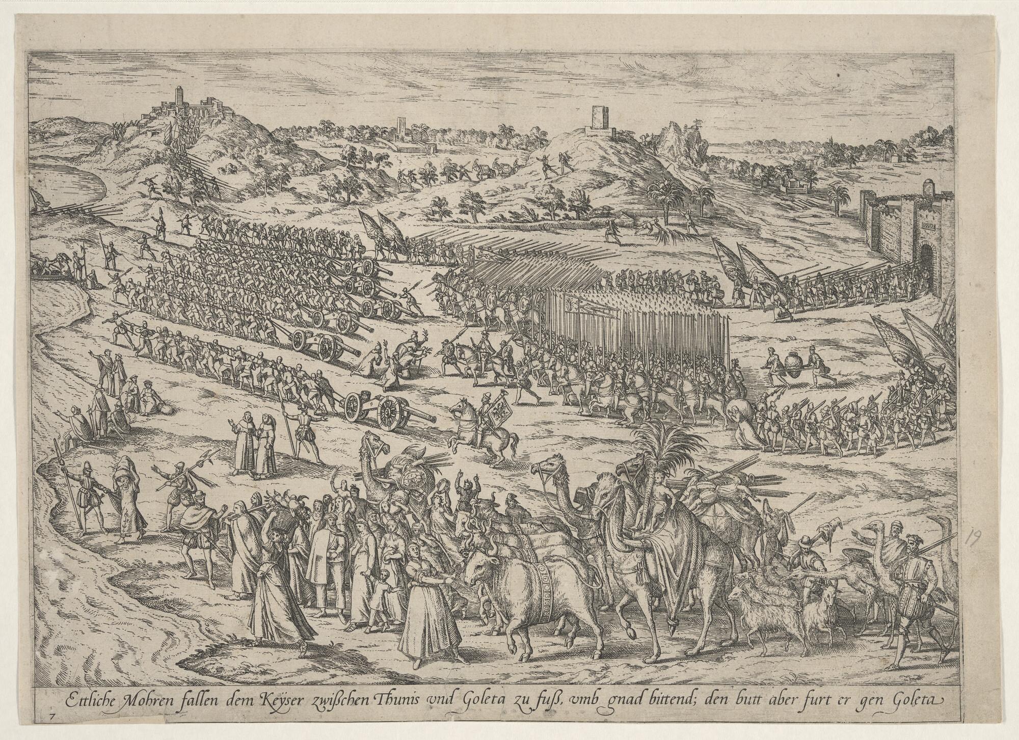 Ettelijke Moren vallen de Keizer te voet, 1535.