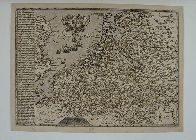 Kaart van de Nederlanden met chronologische lijst van de gebeurtenissen van 1566 tot 1604