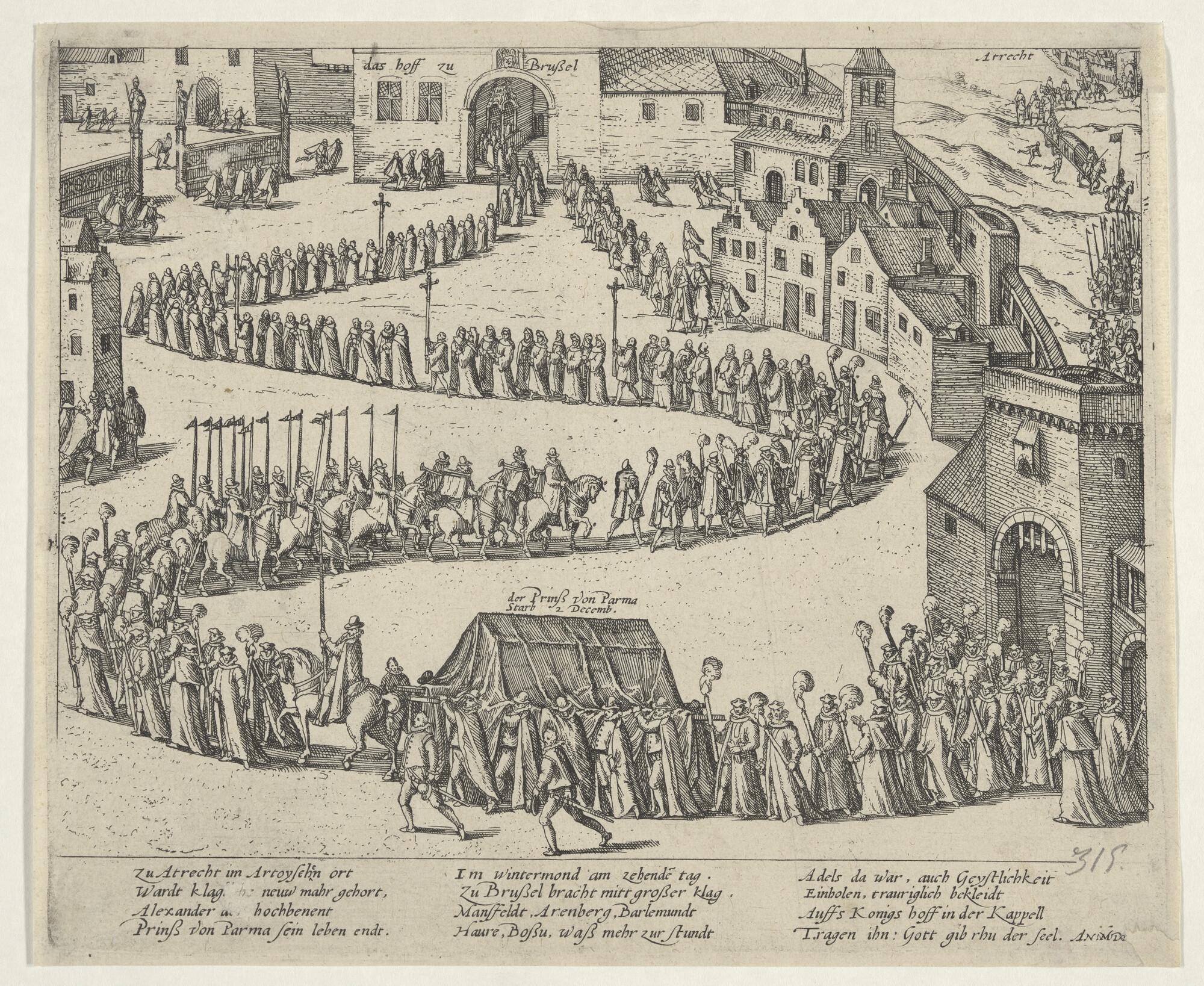 Begrafenis van Parma in Brussel, 10 december 1592, na zijn overlijden in Atrecht 2 december 1592.