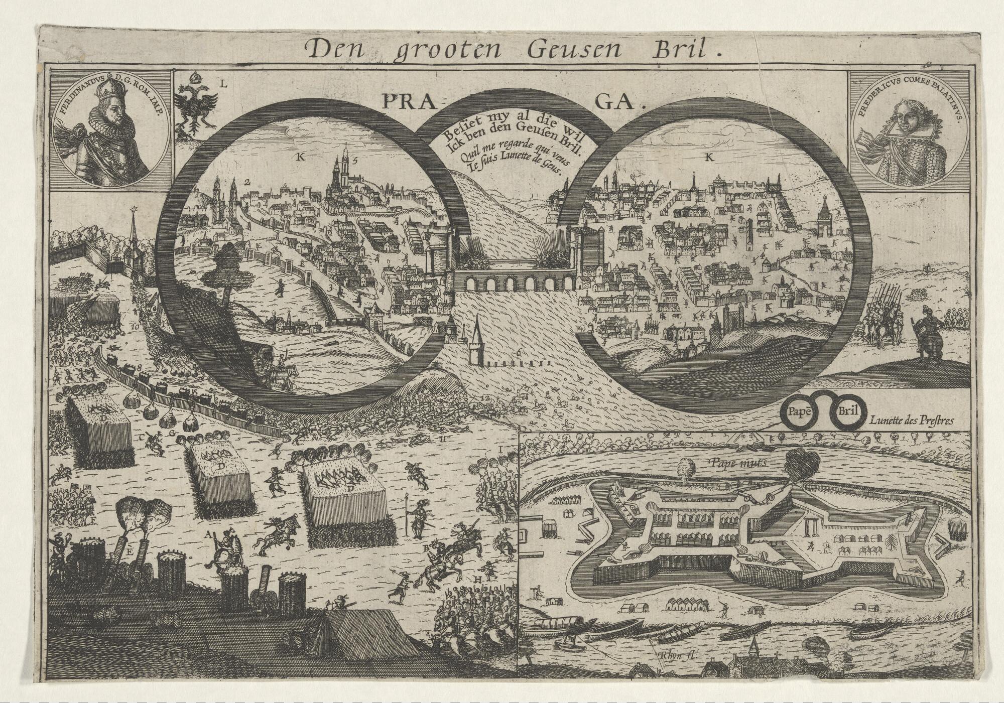 'Den grooten Geusen Bril', spotprent op de nederlaag van Frederik van Bohemen