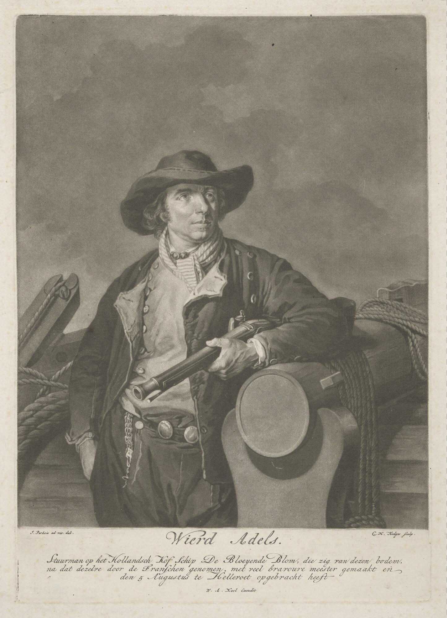 Portret van stuurman Wierd Adels op het kofschip 'De Bloeyende Blom'