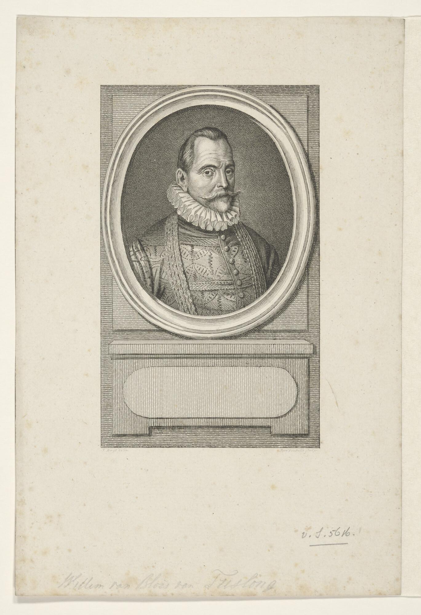 Prent proefdruk, portret van Willem Blois van Treslong