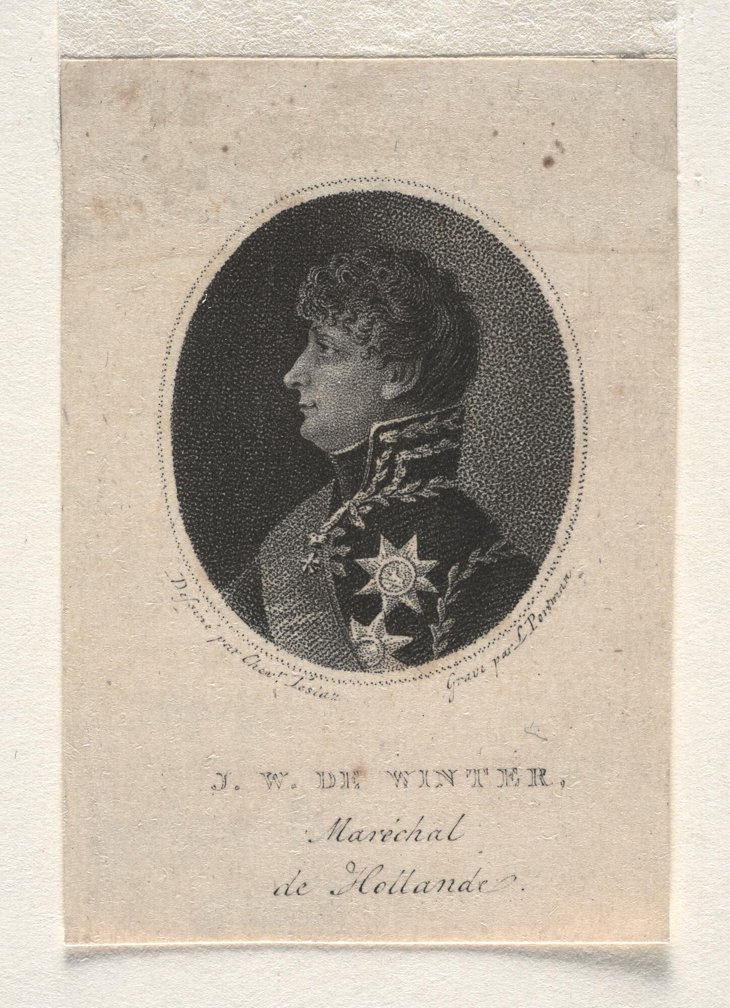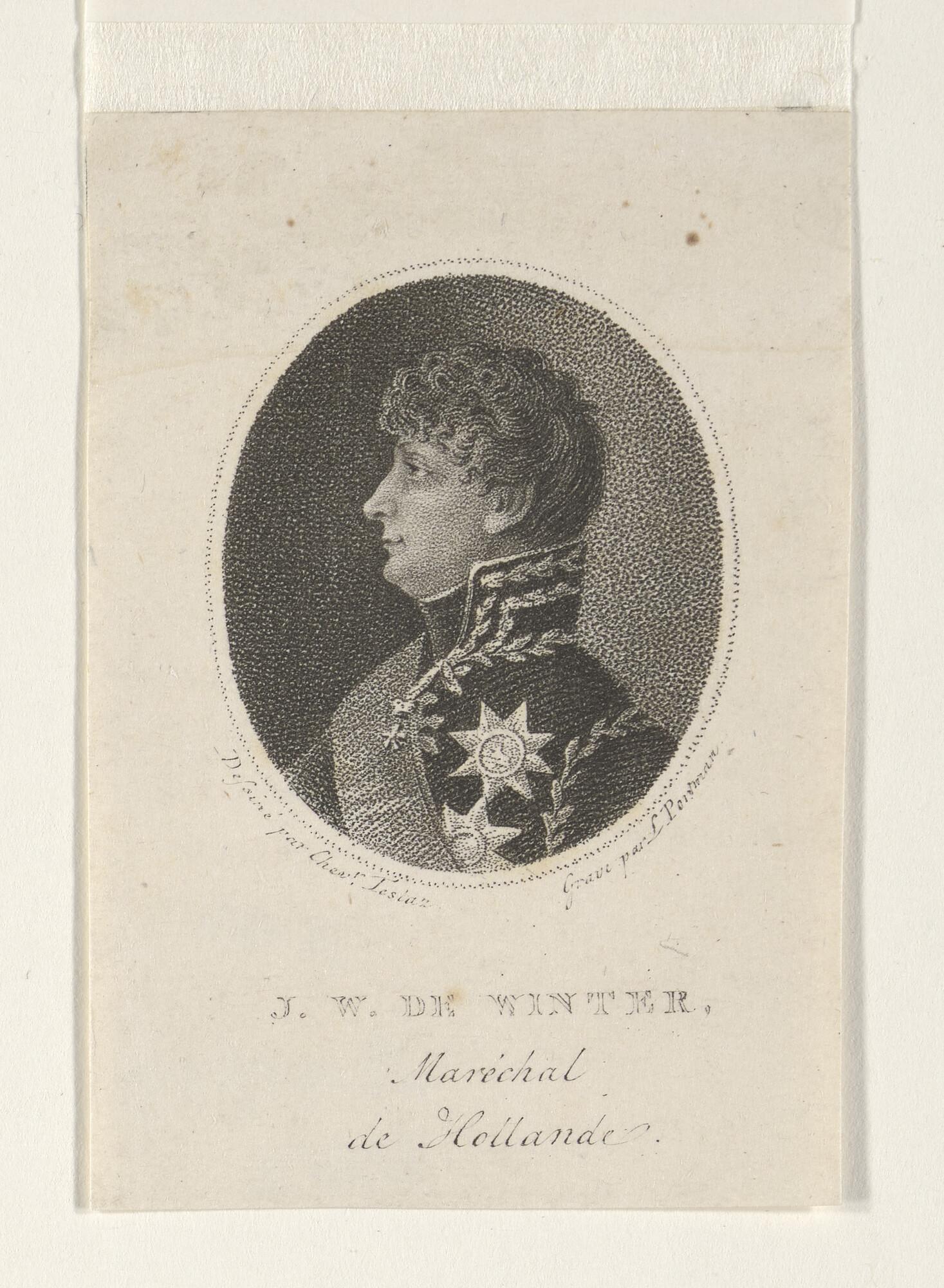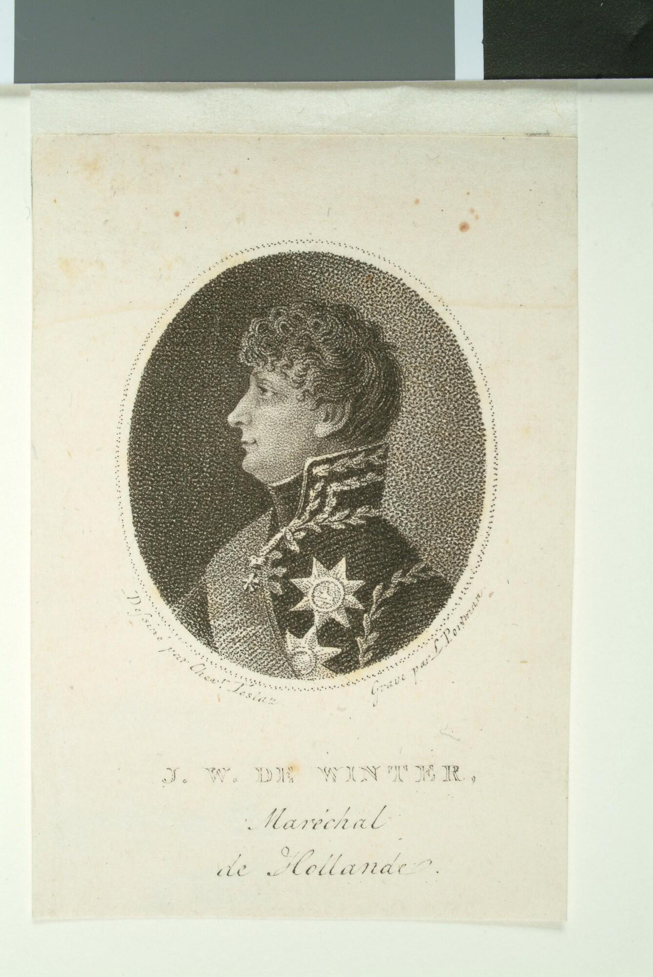 Portret van J.W. de Winter als Maarschalk van Holland in ovaal en profil naar links.