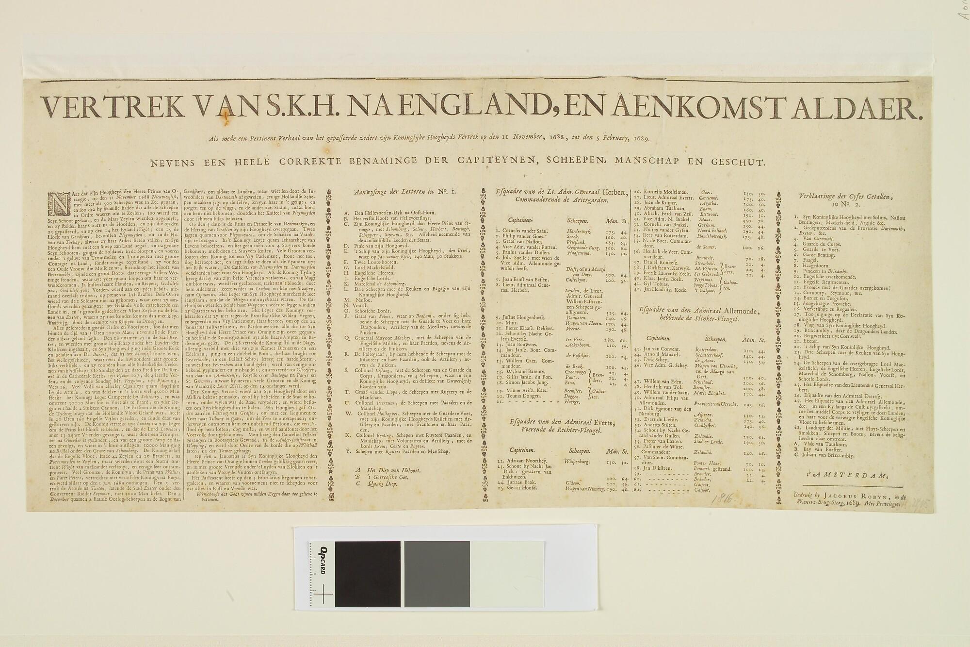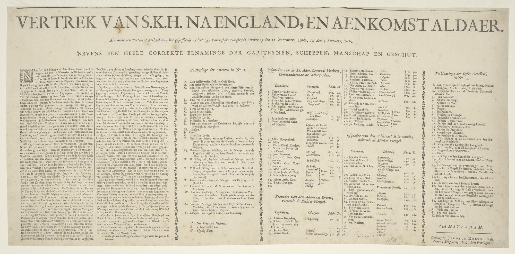 Tekst bij de prent: De overtocht van stadhouder prins Willem III in 1688