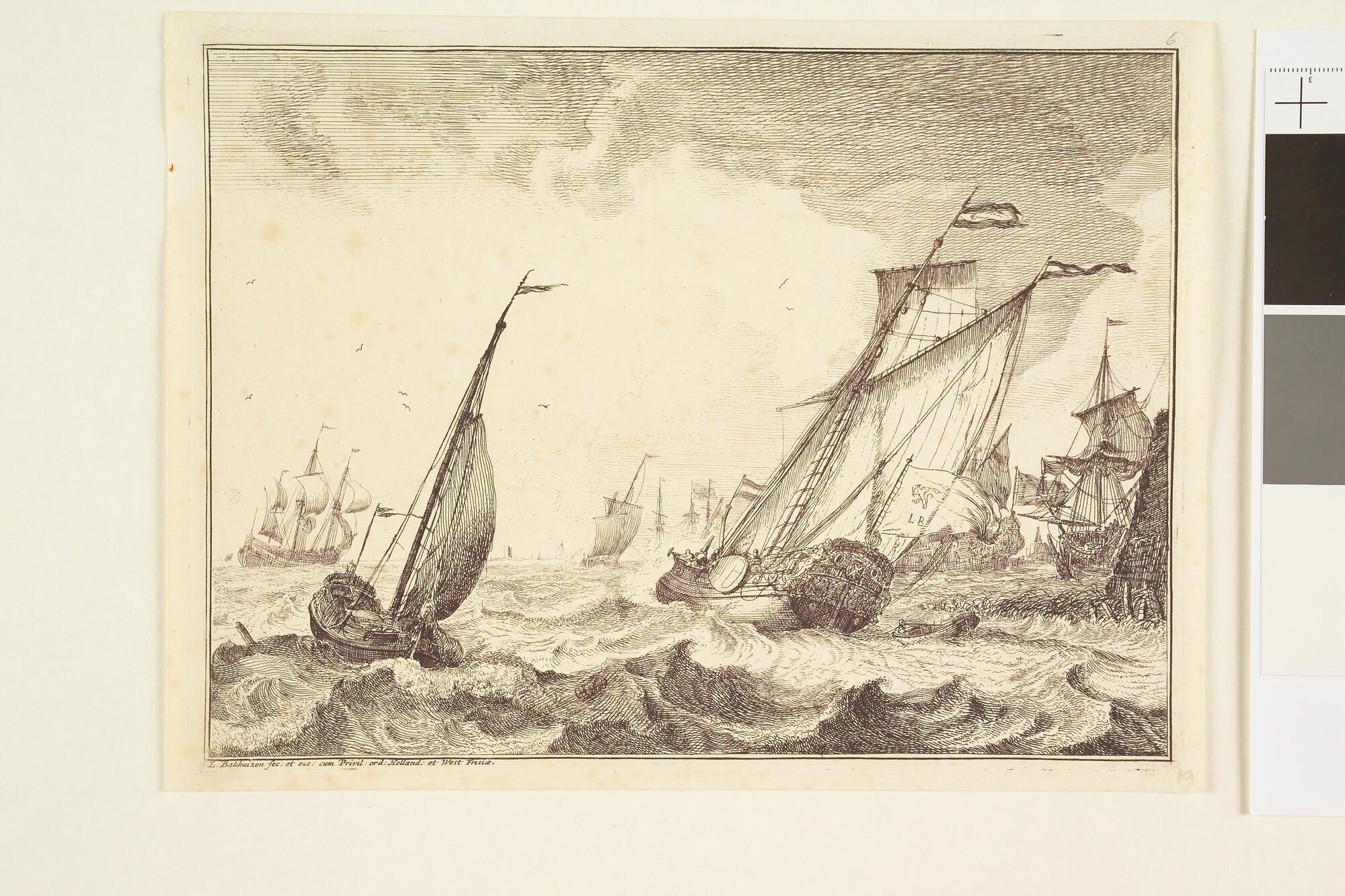 Uit de serie D'Y Stroom en Zeegezichten: Een generaliteitsjacht en een speeljacht op een onbekende rede.