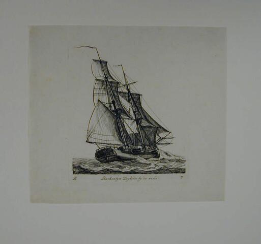 Prent van een barketijn. Uit de suite 'Verscheide soorten van Hollandse schepen', vijfde katern, E-7.