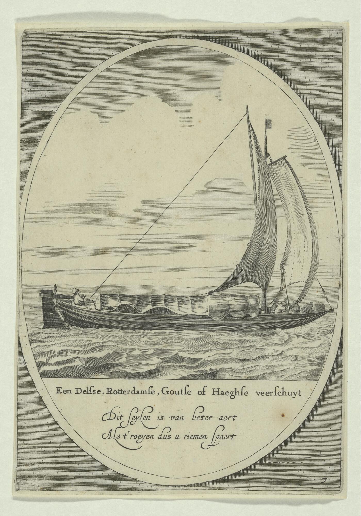 Prent van een veerschuit