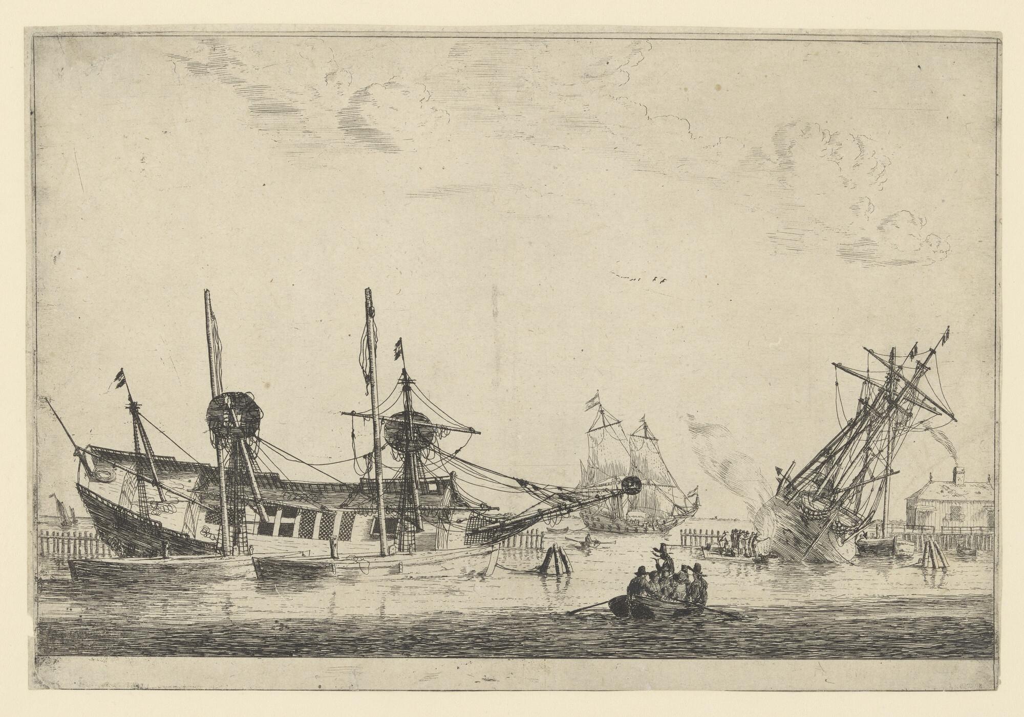Het kalfaten van koopvaardijschepen in de haven van Amsterdam.
