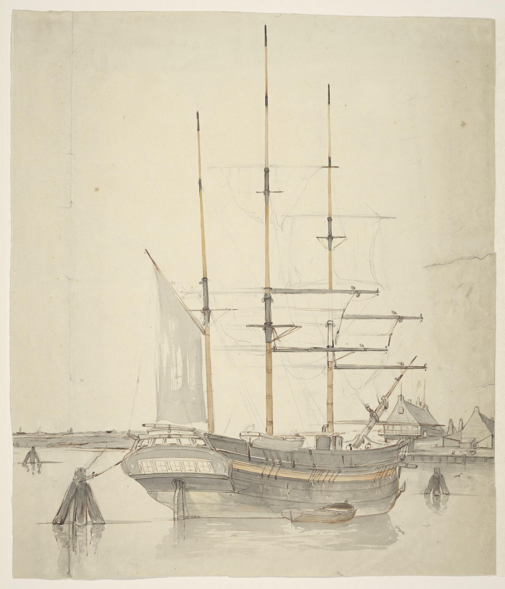 Het koopvaardijfregat 'Zeemanshoop' in een haven