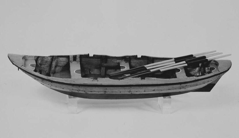 Model van een Tholense visroeiboot of Hollandse boot, einde negentiende eeuw. Met vier riemen.