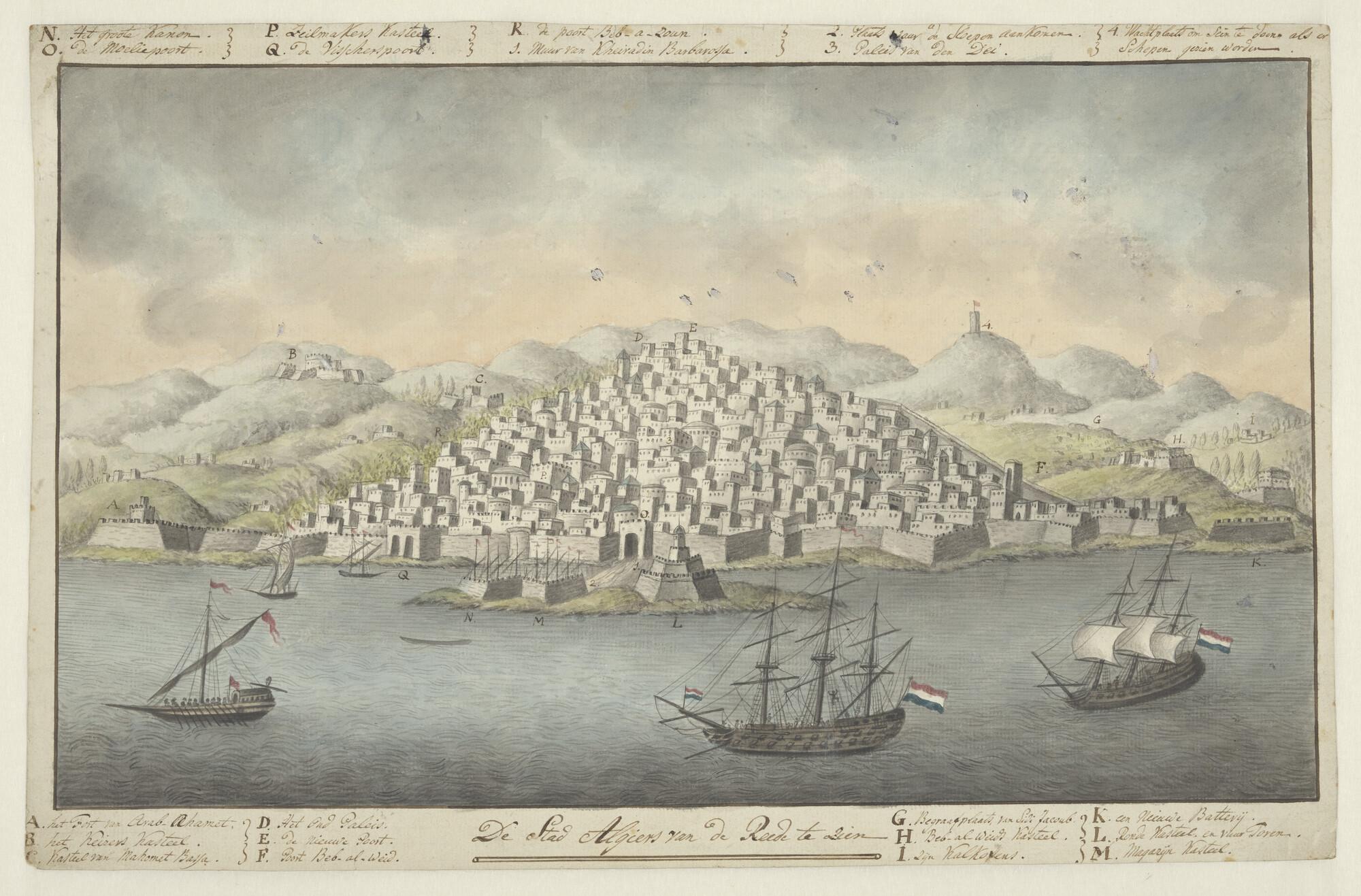 Twee nederlandse oorlogsschepen op de rede van Algiers