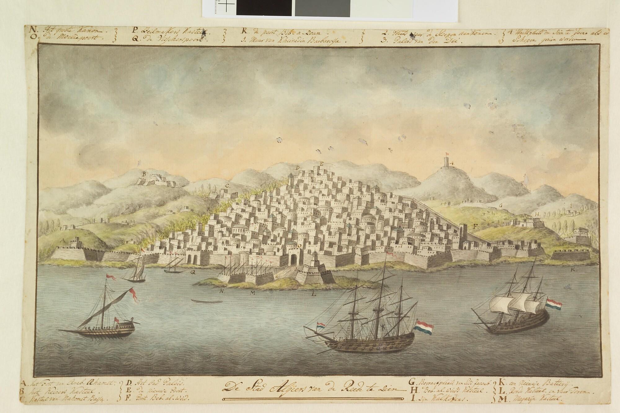 Twee nederlandse oorlogsschepen op de rede van Algiers.