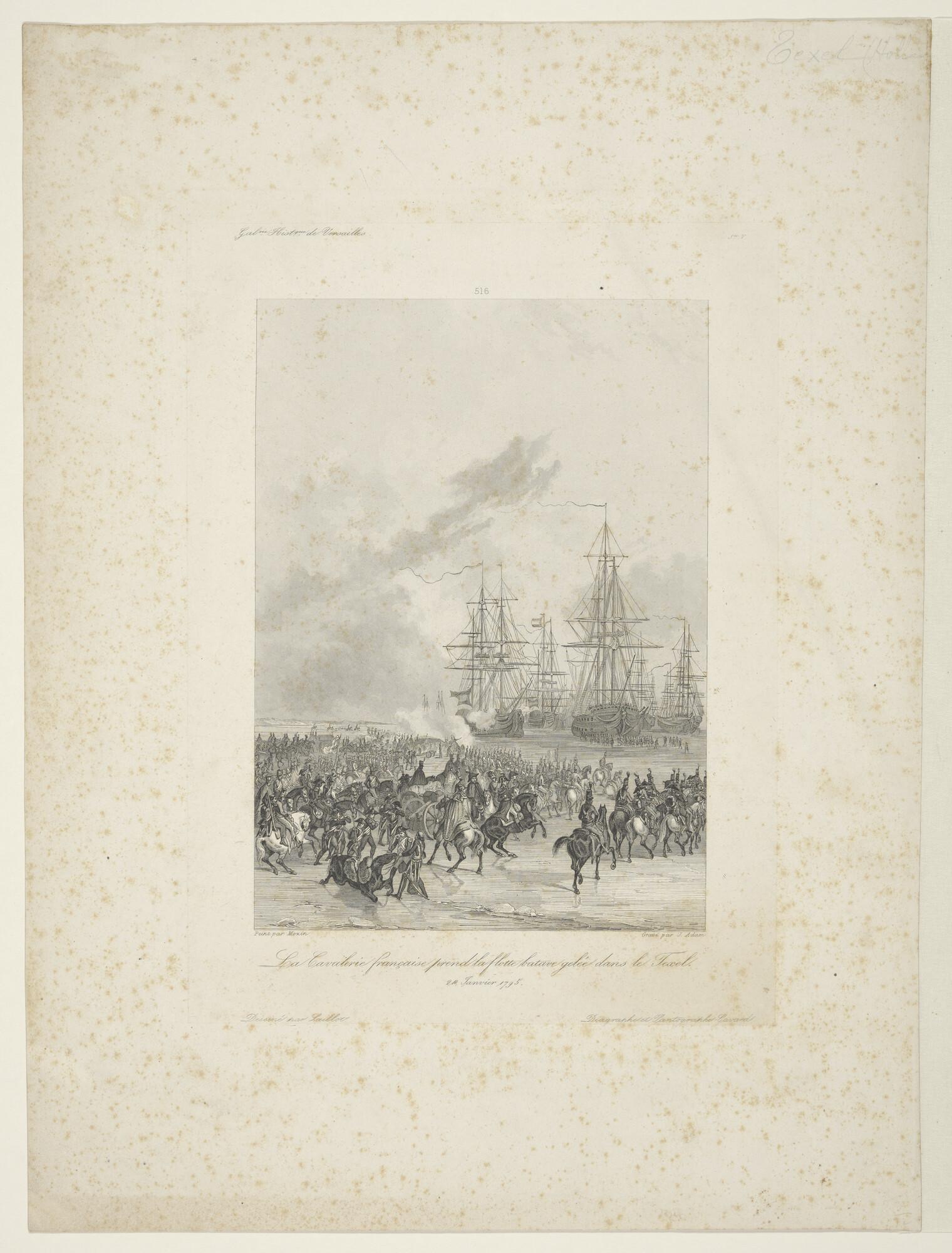 'La Cavalerie française prend la flotte batave gelée dans le Texel.' Franse cavalerie verovert de Nederlandse vloot