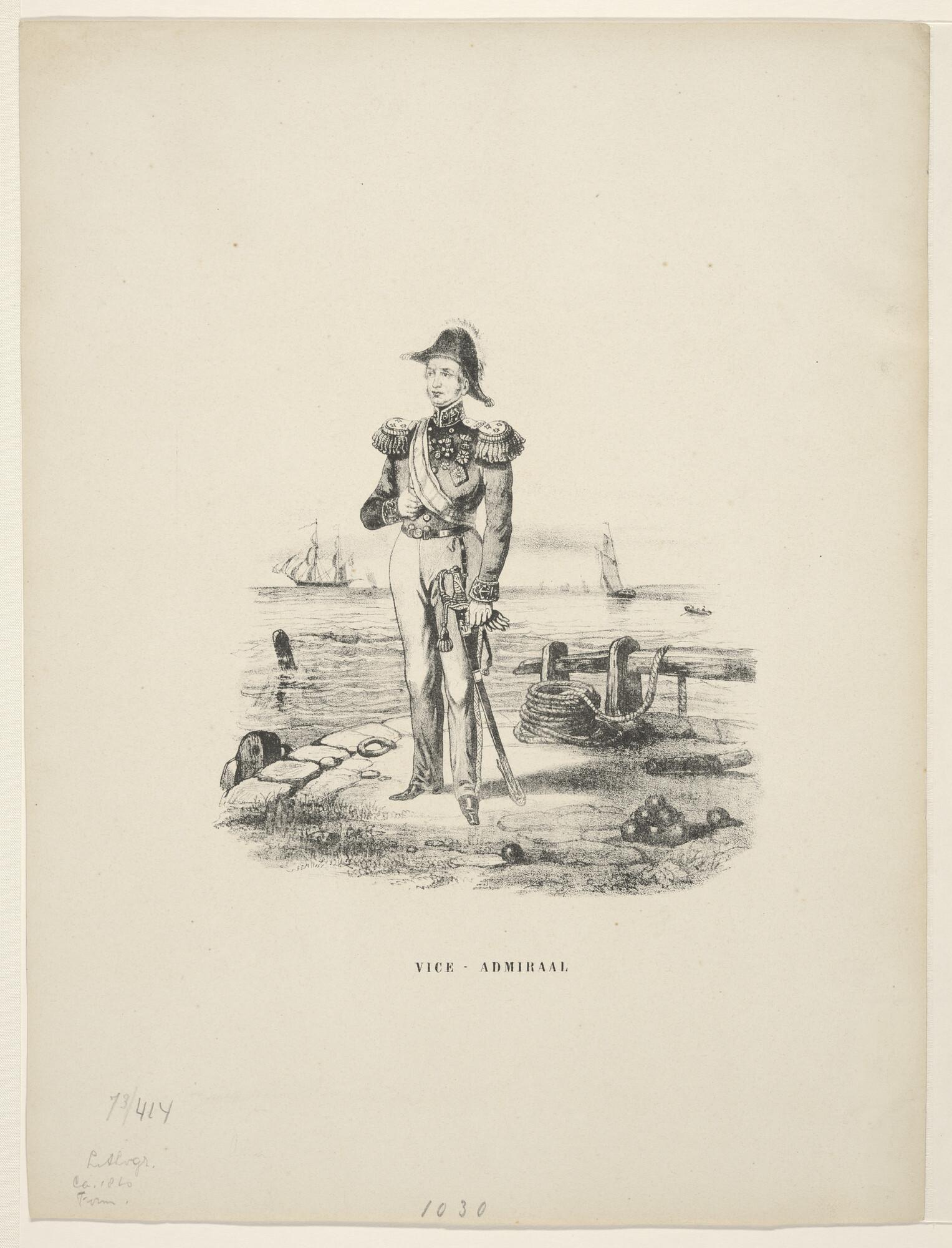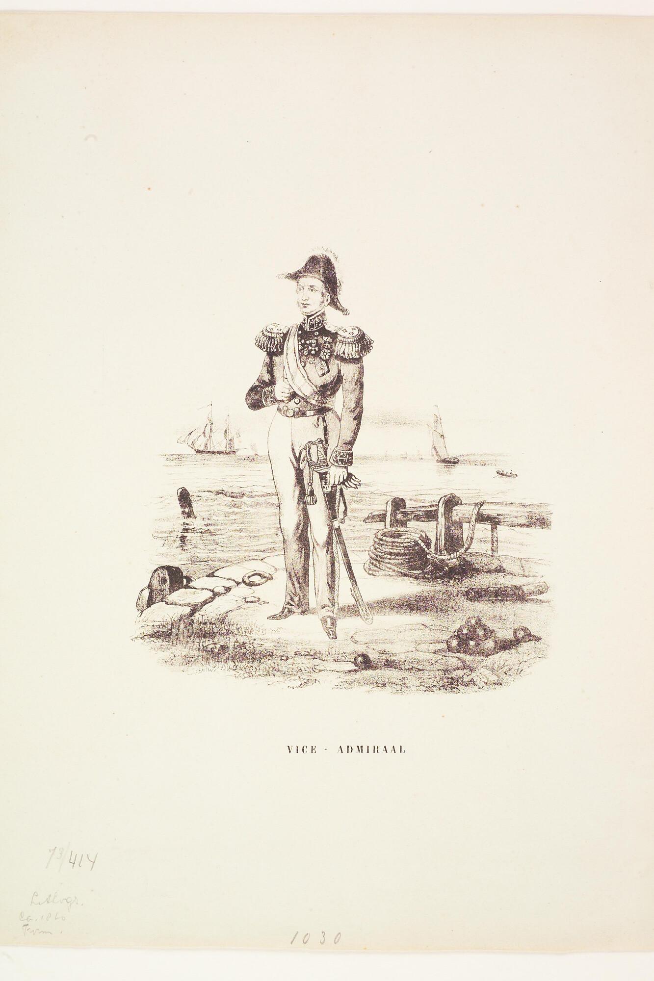 Vice-Admiraal, ten voeten uit, staande op een havenhoofd