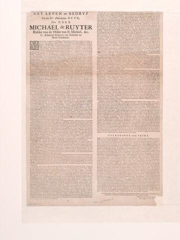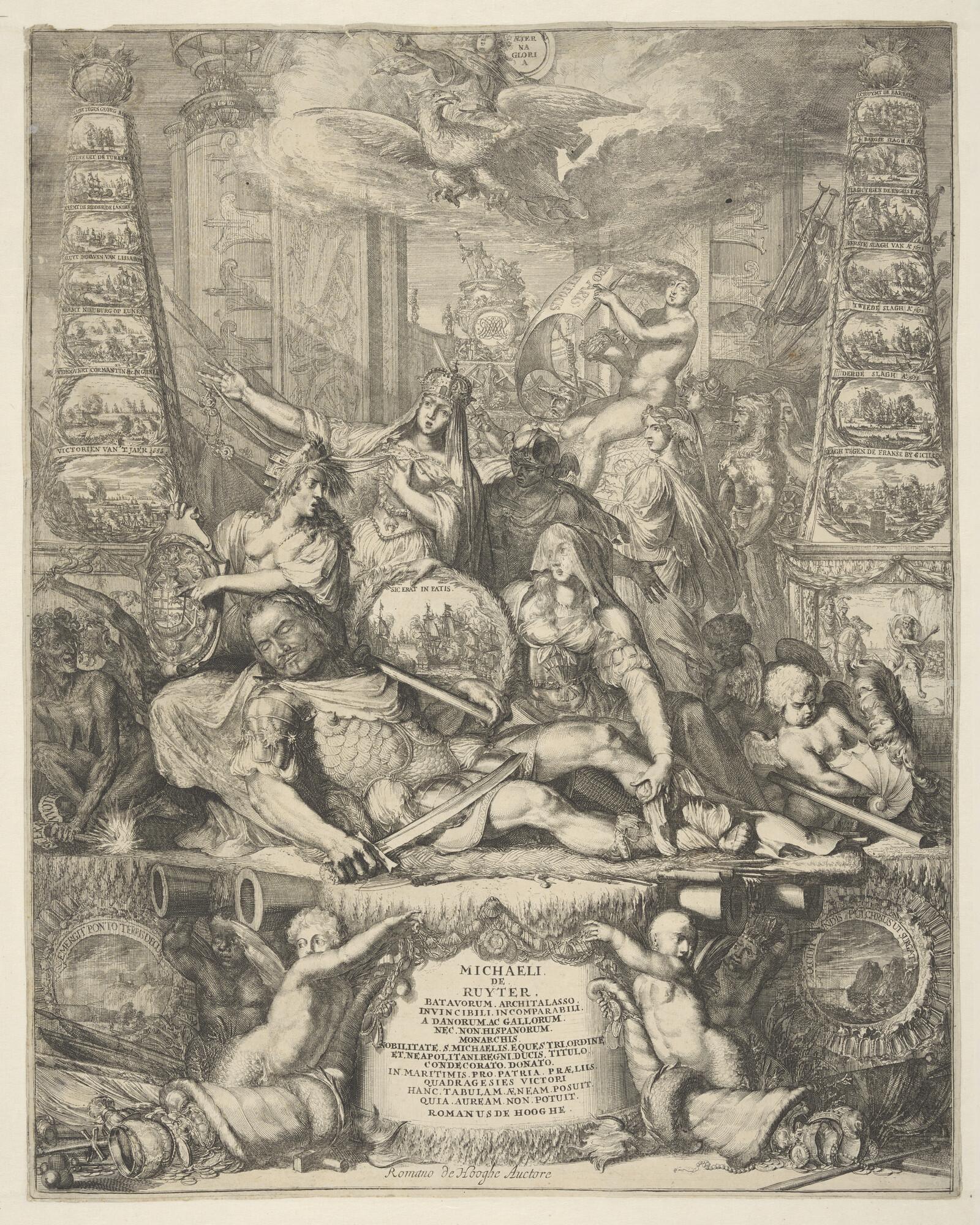 Zinneprent ter ere op de dood van Michiel de Ruyter