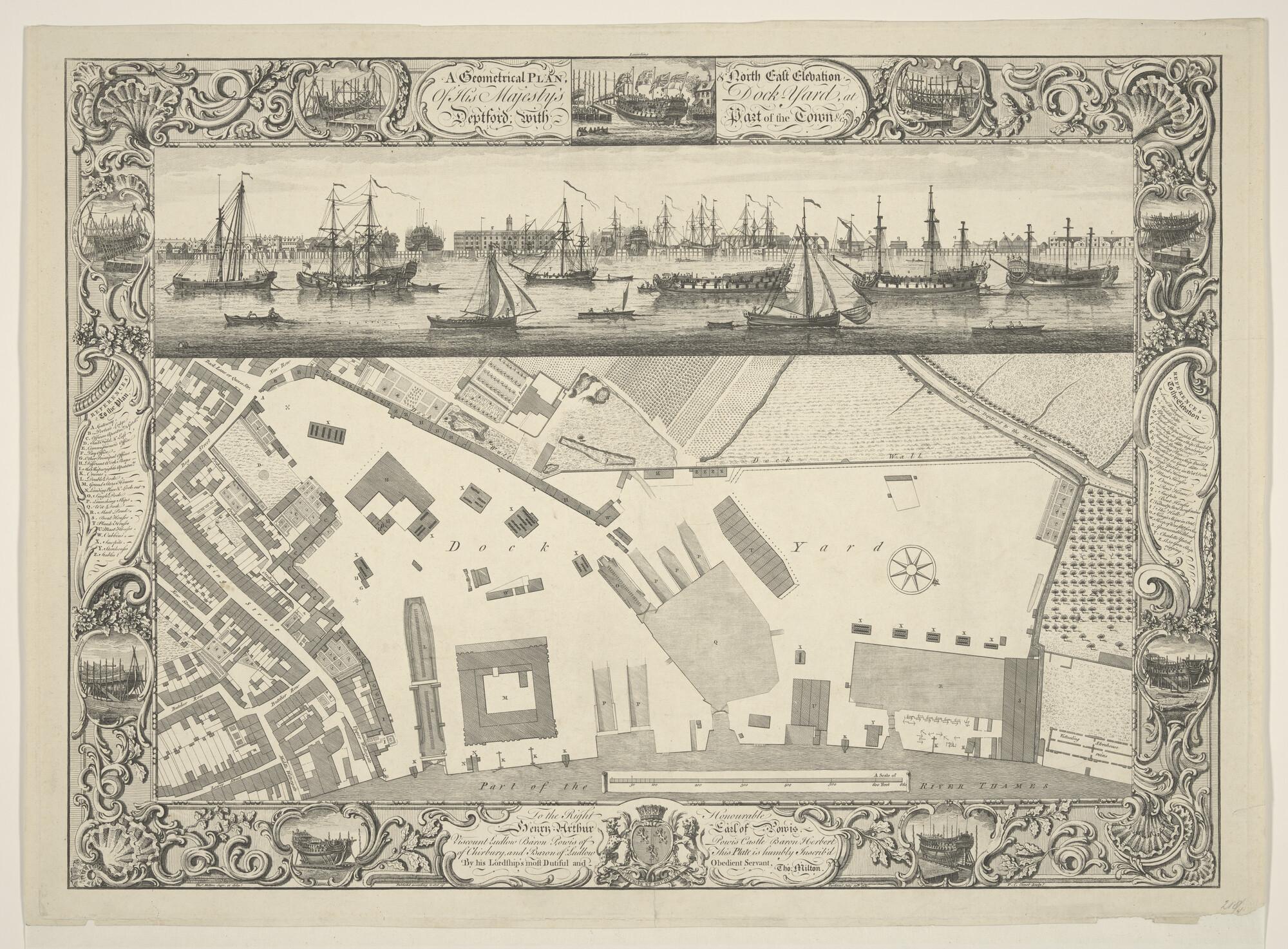 Views and plans of the Royal Dock Yards : Deptford, with part of the Town.