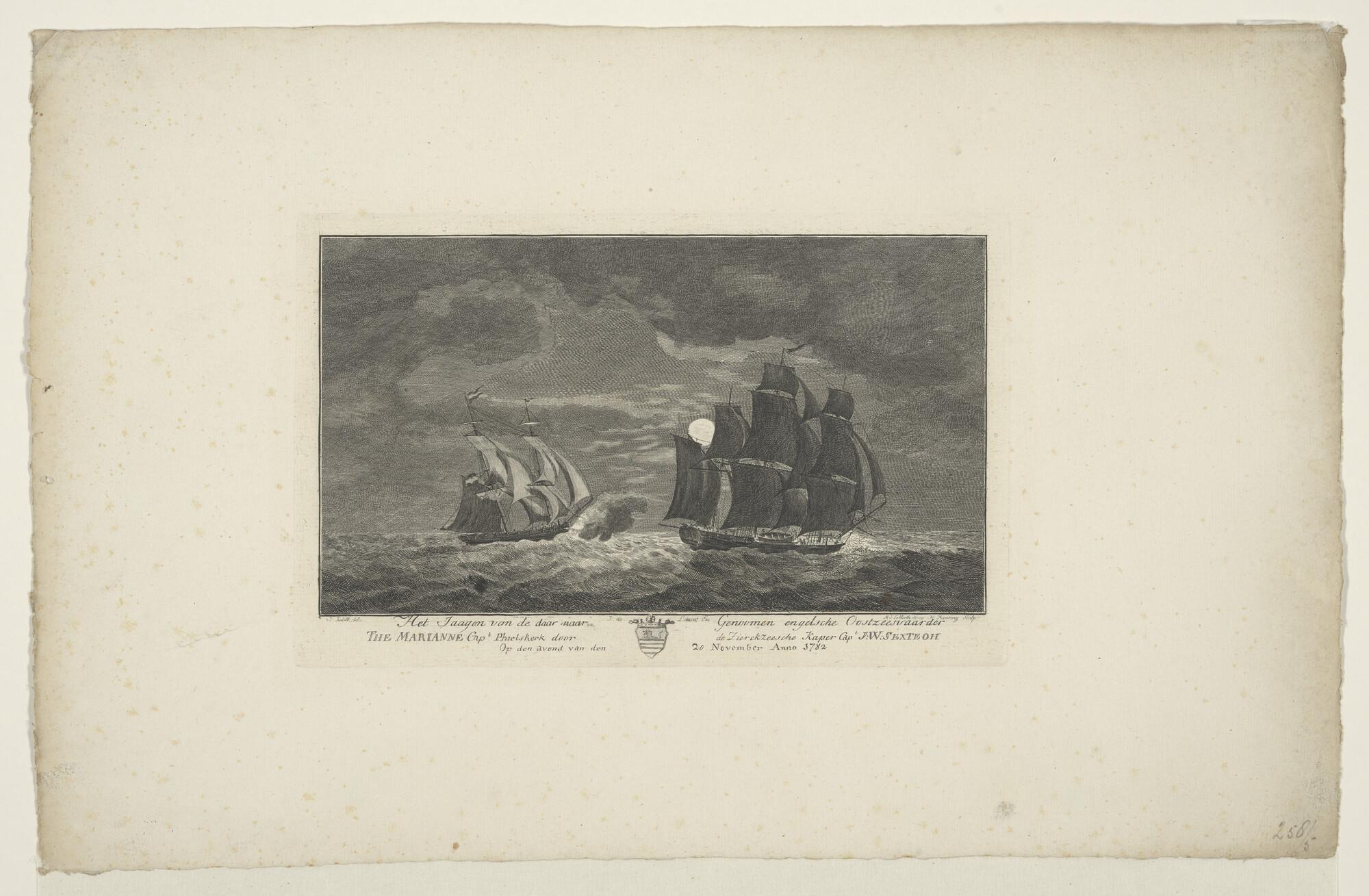 Het jagen van de later door Le Turc genomen Engelse Oostzeevaarder "Marianne" door de Zierikzeesche kaperkapitein J.W. Sexteoh, 20 november 1782.