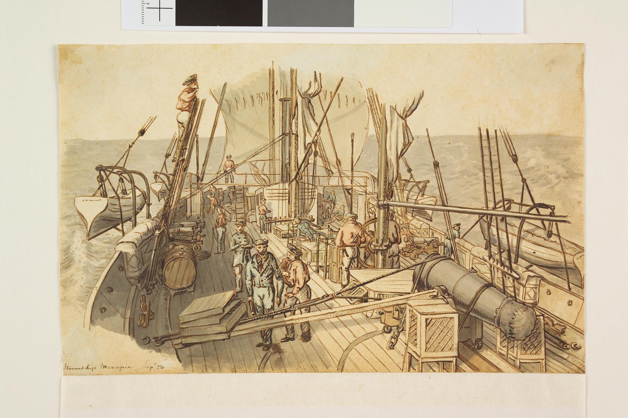 Dekaanzicht aan boord van het raderstoomschip Zr.Ms. Merapi