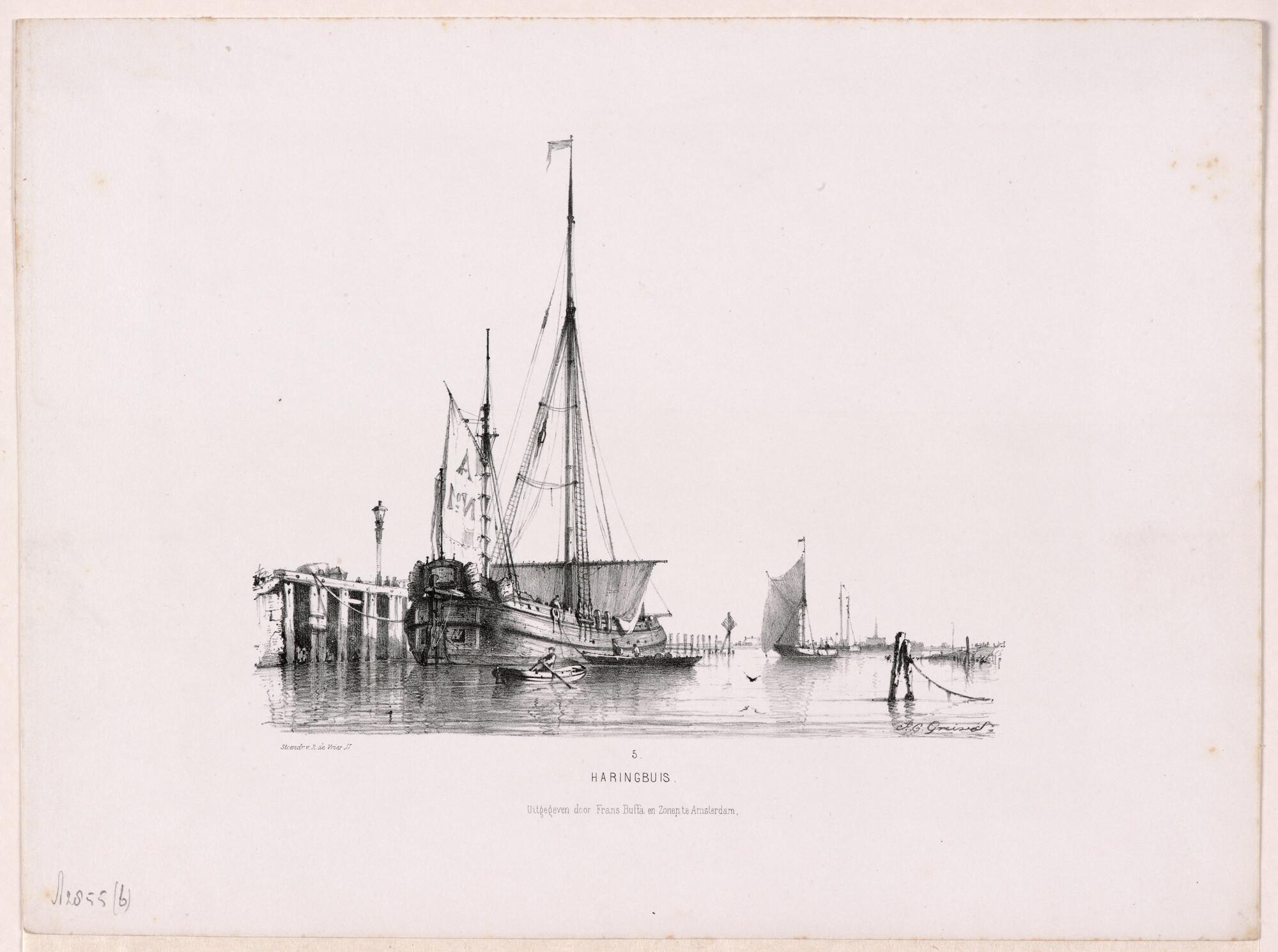 Studien van Hollandsche schepen, naar de natuur. Serie van twaalf litho's, nummer 5: haringbuis.