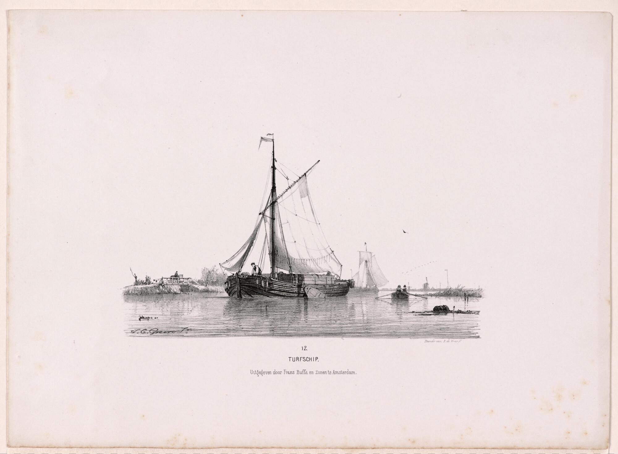 Studien van Hollandsche schepen, naar de natuur. Serie van twaalf litho's, nummer 12: turfschip.