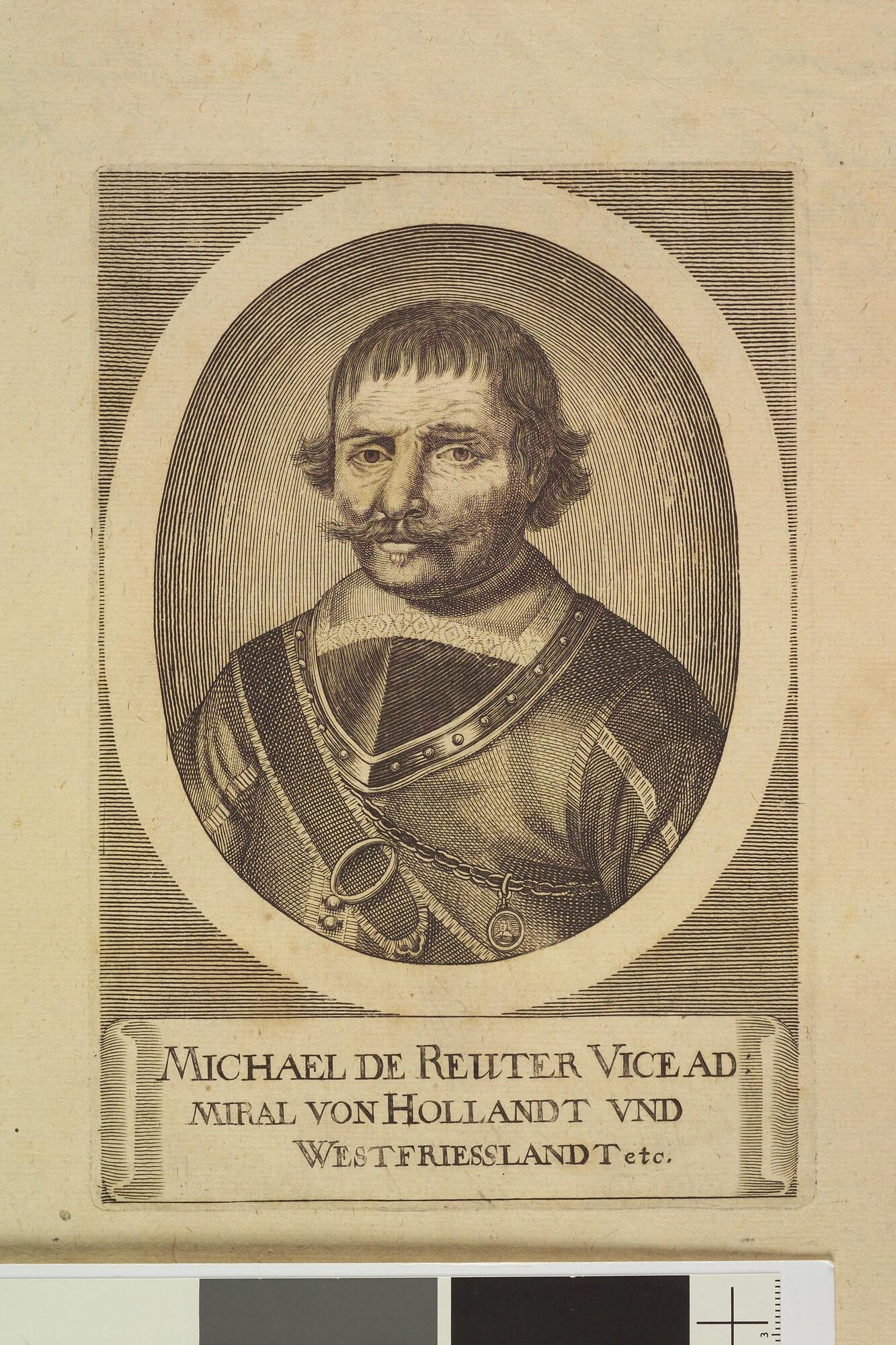 Portret van Michiel A. de Ruyter, geharnast borststuk naar voren en links.