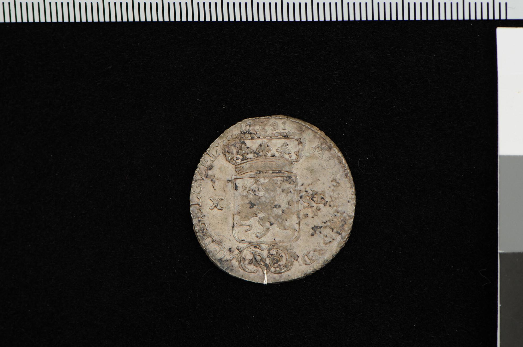 Munt van een halve gulden [10 stuiver] van de VOC van Zeeland, 1791