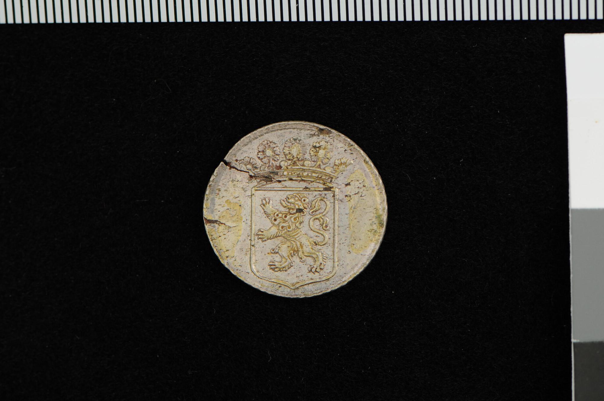 Zilveren afslag van een duit, West-Friesland, 1756 Nieuwjaarsmunt. Gekroond wapen met twee leeuwen.