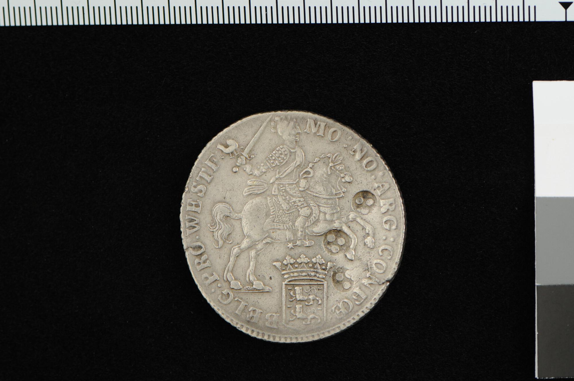 Een dukaton van West-Friesland, 1758, met inslagen.