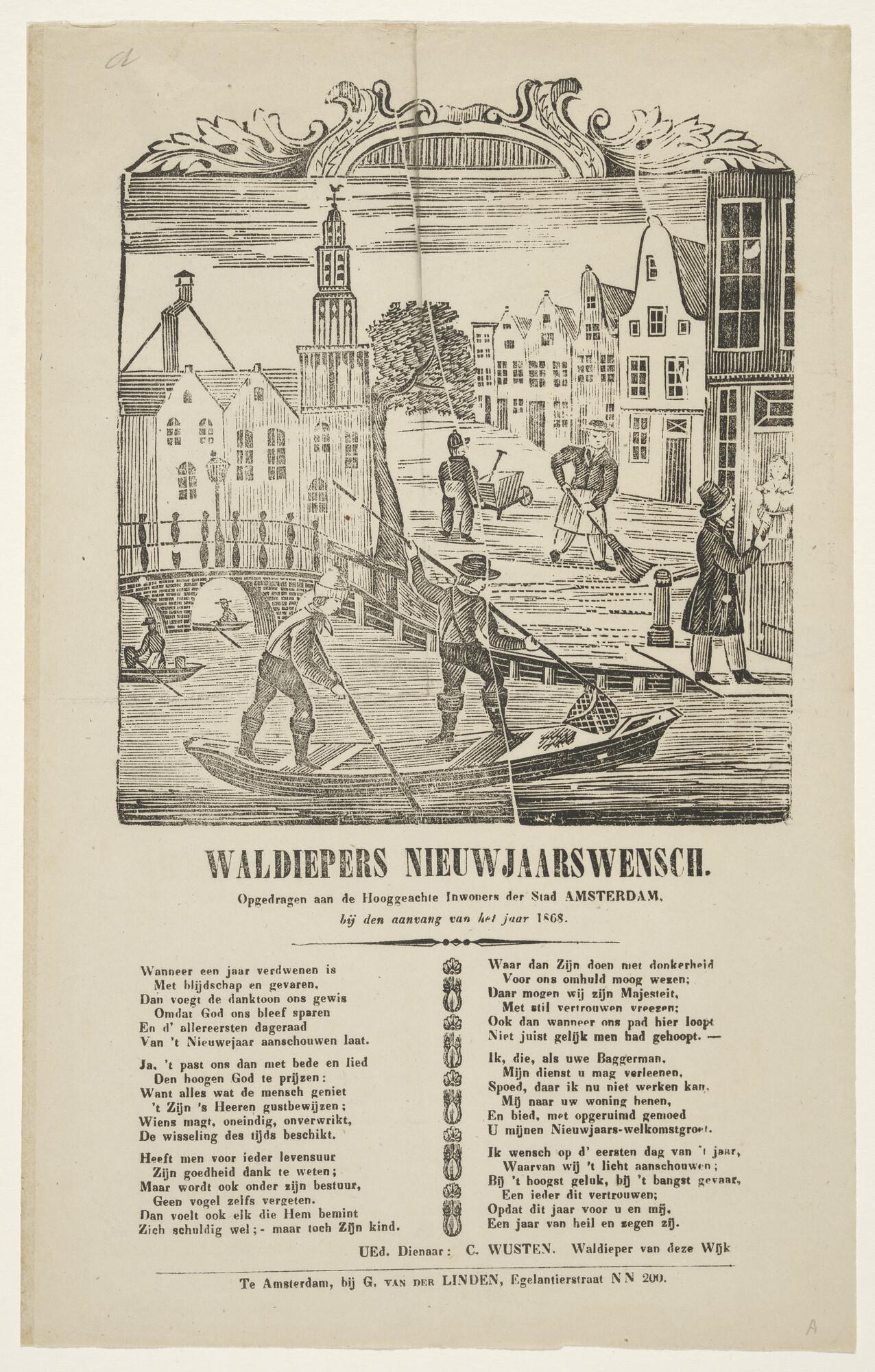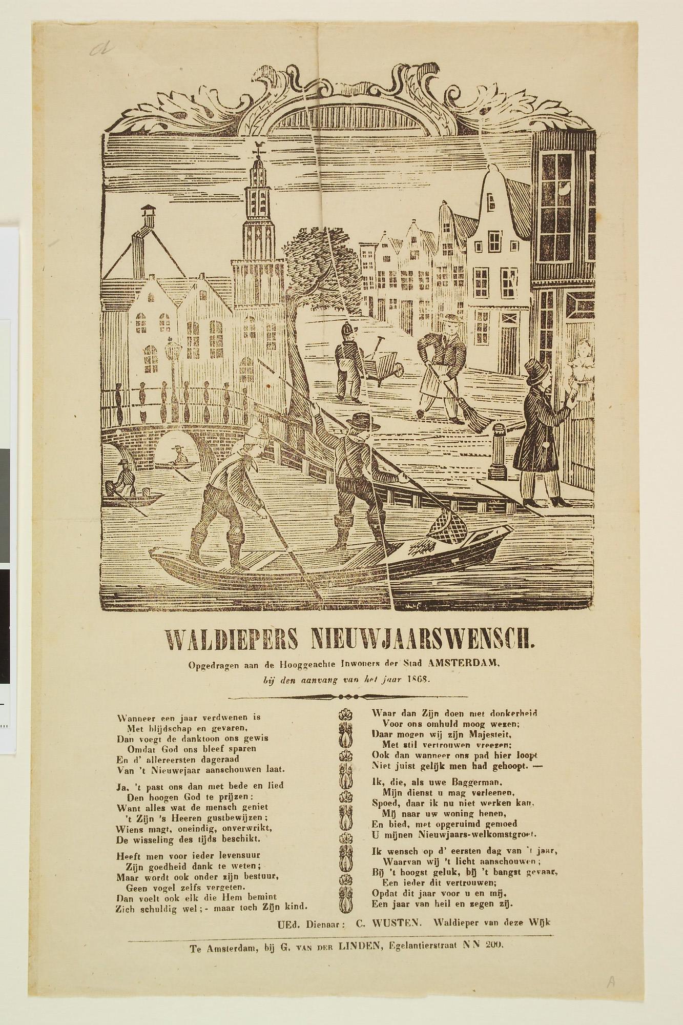 Nieuwjaarswens van de Amsterdamse waldiepers (baggerlieden), 1868.