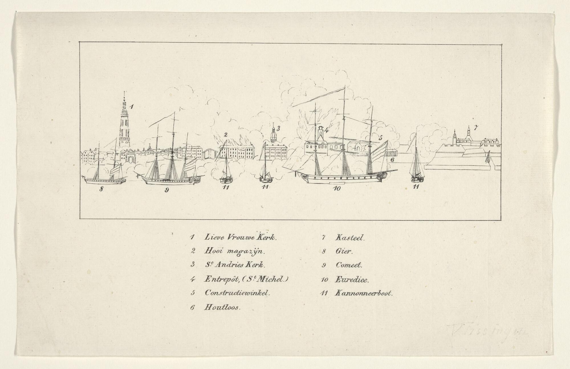 Profiel van de stad Antwerpen met onder andere de Lieve Vrouwe Kerk