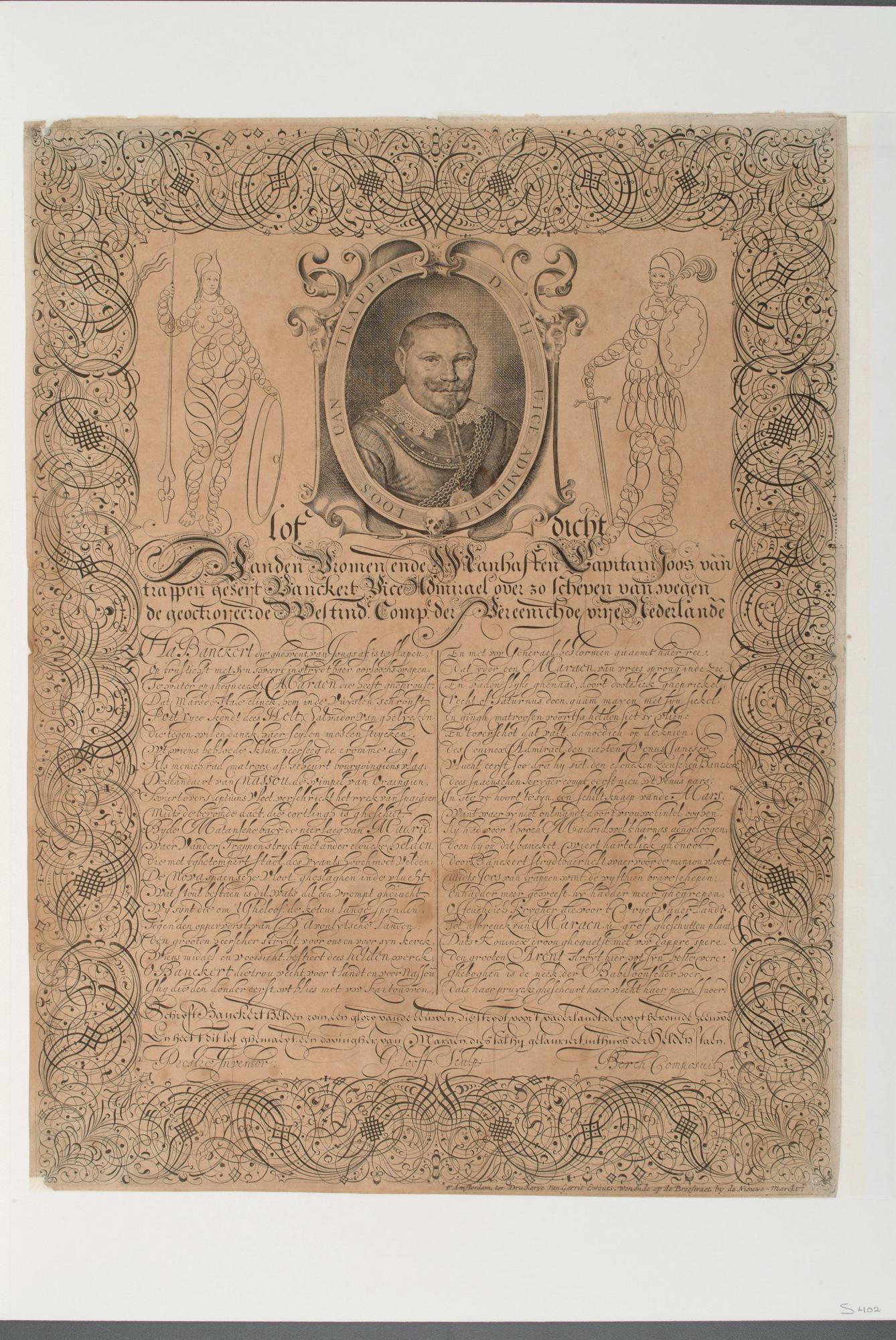 Portret van Joost van Trappen, gezegd Bankert of Banckert, met daaronder een lofdicht