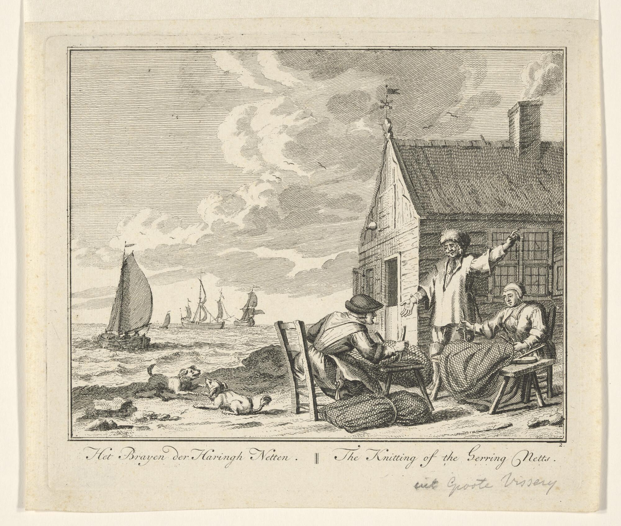 Historieprentje uit 'de Groote Visserij', nummer 2: het brayen der haringh netten