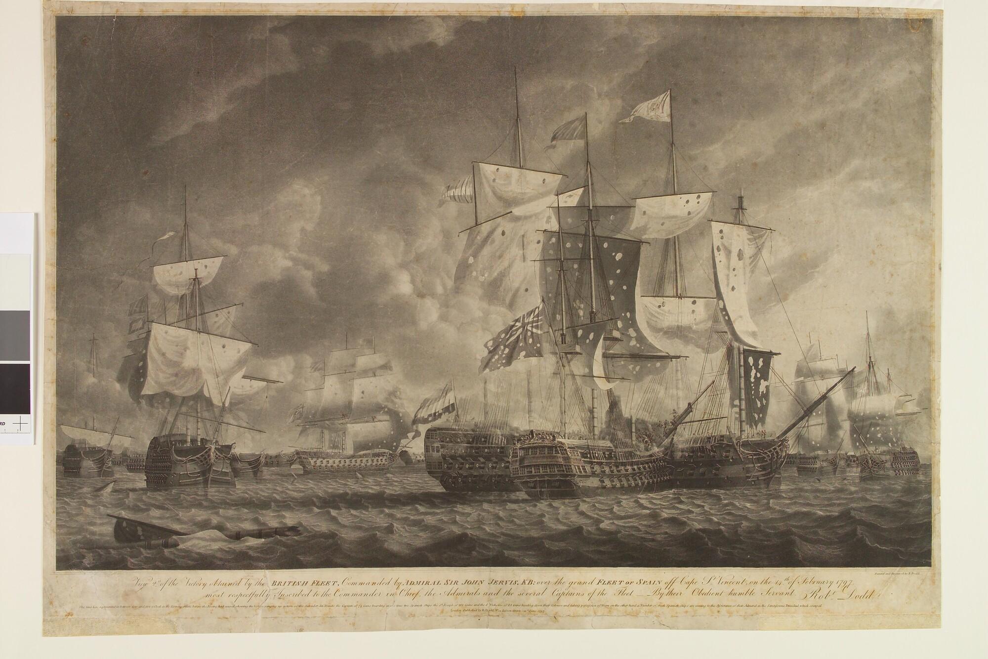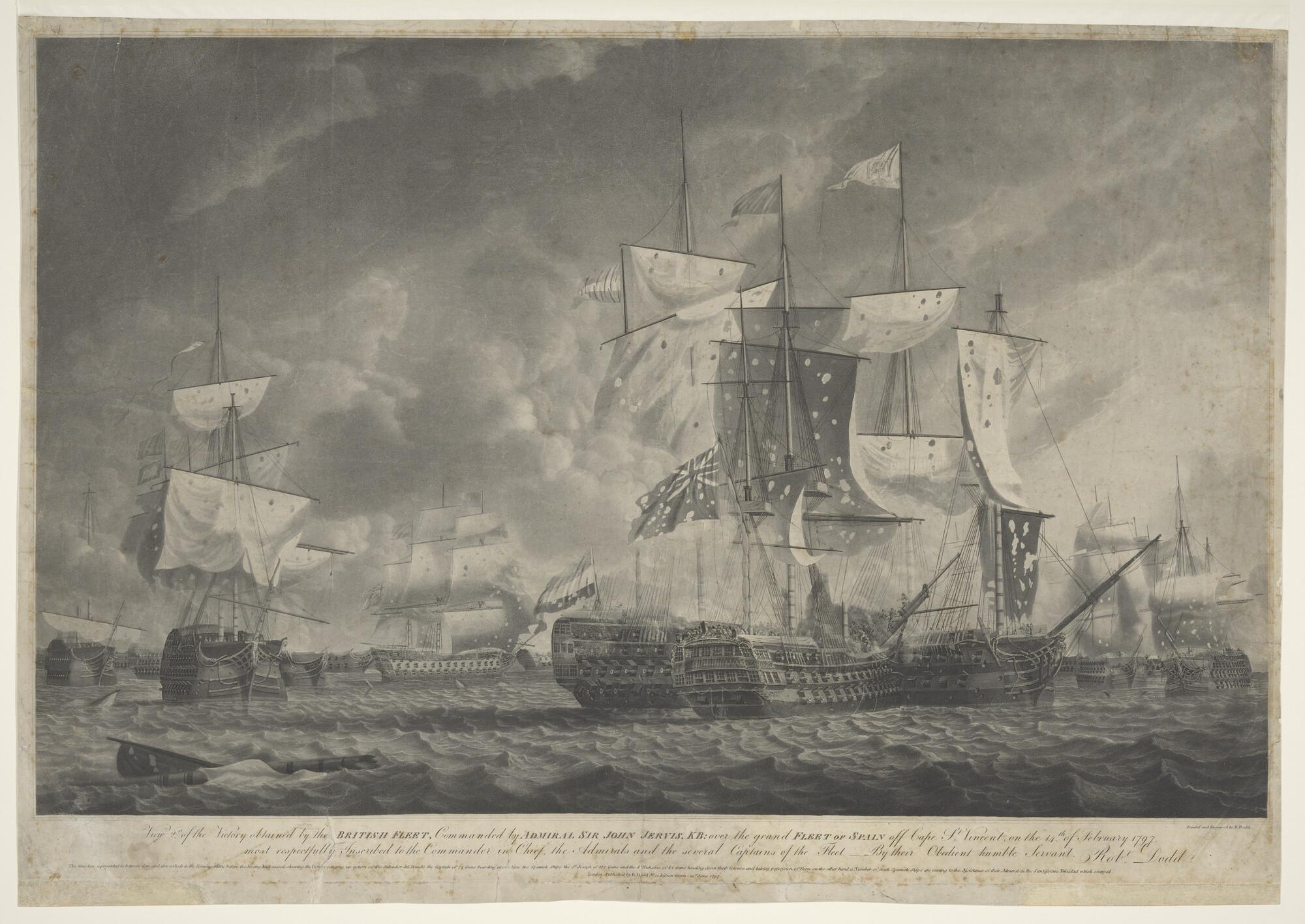 'View 2. of the Victory obtained by the British Fleet'. Tweede gezicht op de overwinning van de Engelse vloot onder commando van admiraal John Jervis op de Spaanse vloot op de rede van Kaap St. Vincent, 14 februari 1797.