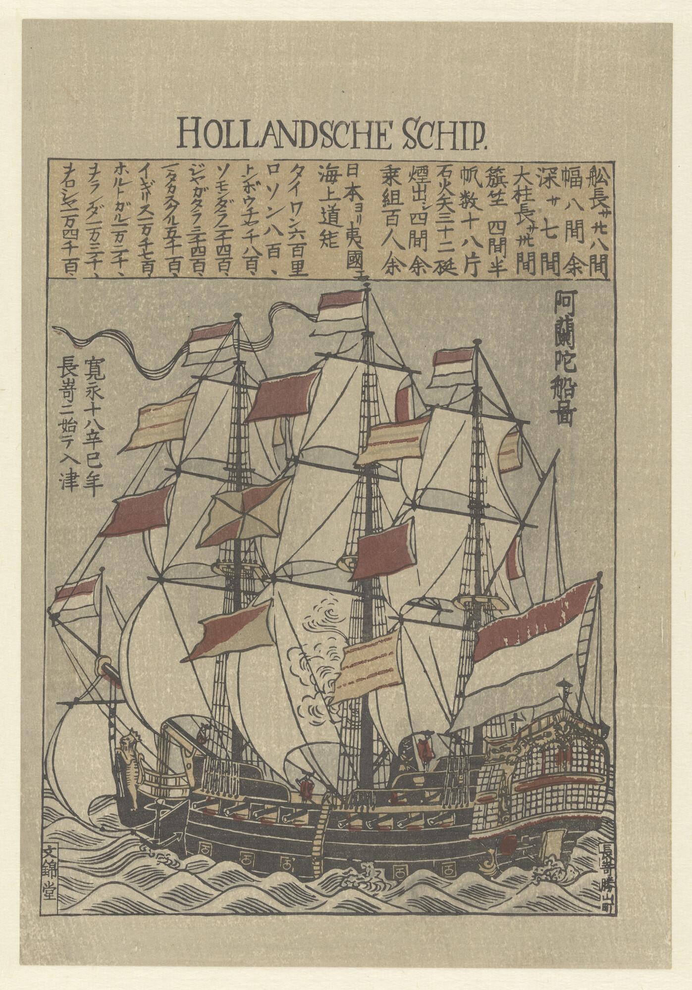 Nagasaki-prent: Nederlands schip met pavoiseervlaggen