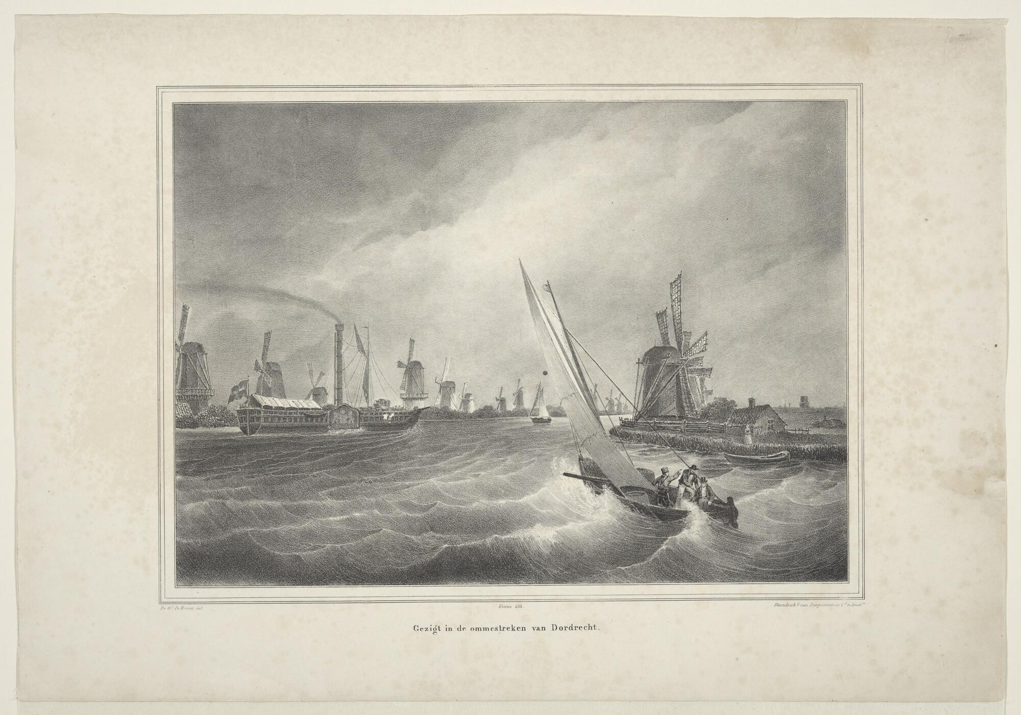 Riviergezicht bij Kinderdijk met een raderstoomboot.