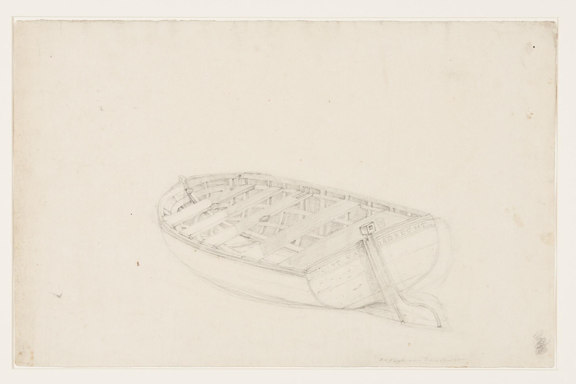 De achtriems sloep De Vlijt van Dordrecht. Verso schets van een sloep.