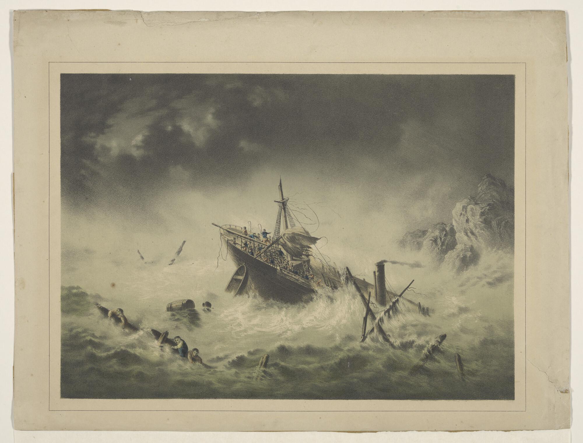 Het vergaan van het Engelse fregat met hulpstoomvermogen "Royal Charter" voor de kust van Anglesey, 26 oktober 1859.