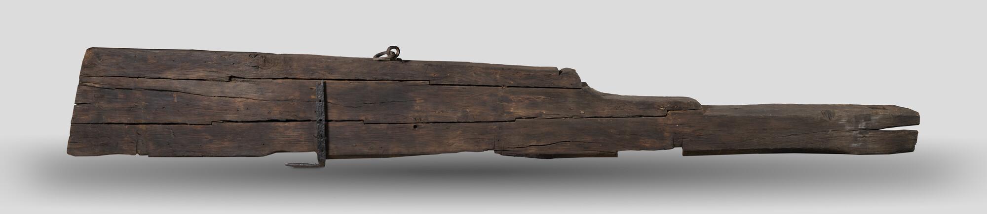 Roer van een zeeschip, aangespoeld te Scheveningen.
