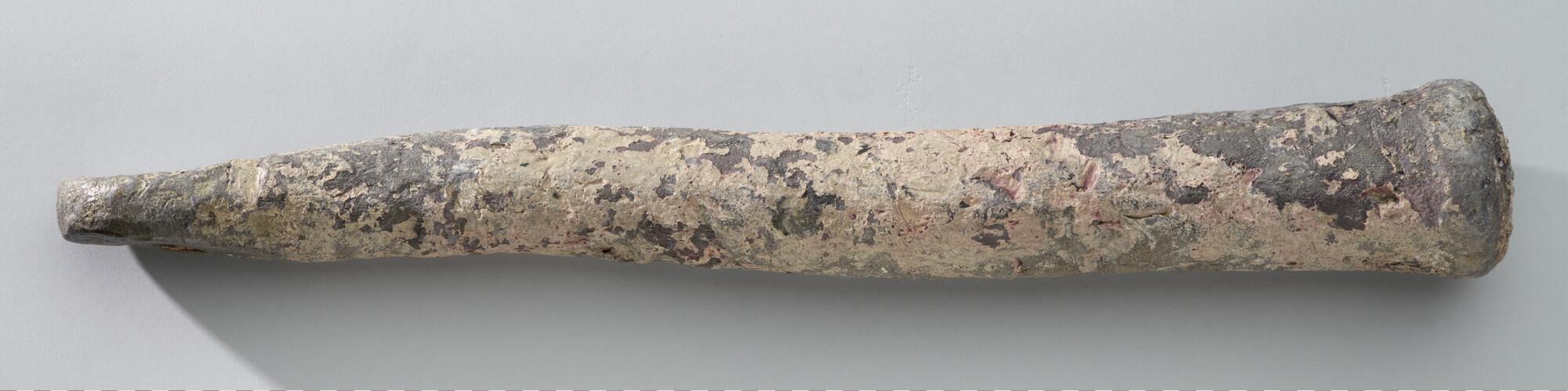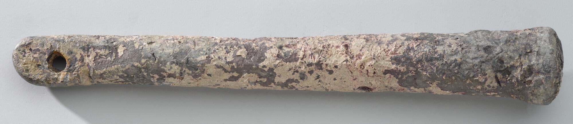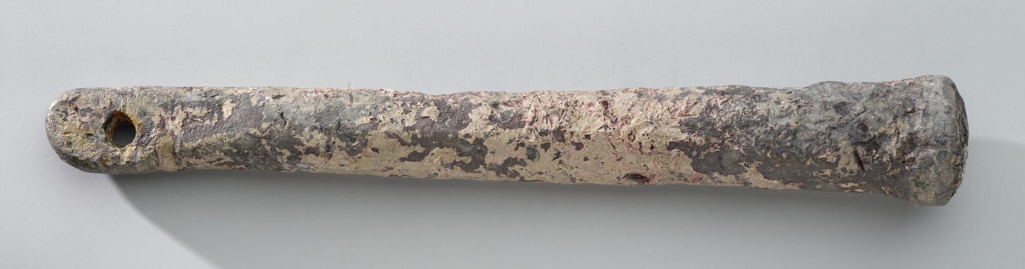 Rond, ongemerkt handlood van circa 7 kg met ziel. Afkomstig uit het wrak van het VOC schip 'Princesse Maria' in 1686 bij de Engelse zuidkust vergaan.