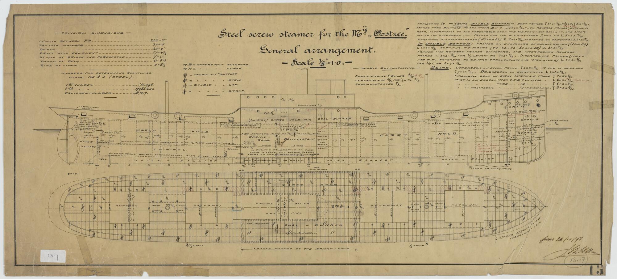 Algemene indeling van het vrachtschip ss. Heelsum van de Stoomvaart [...]